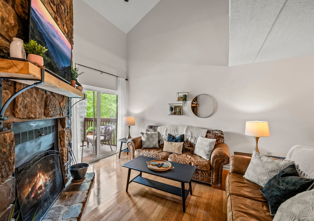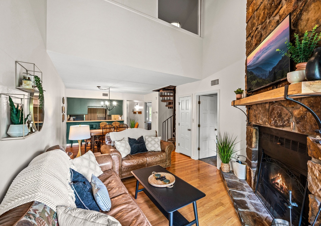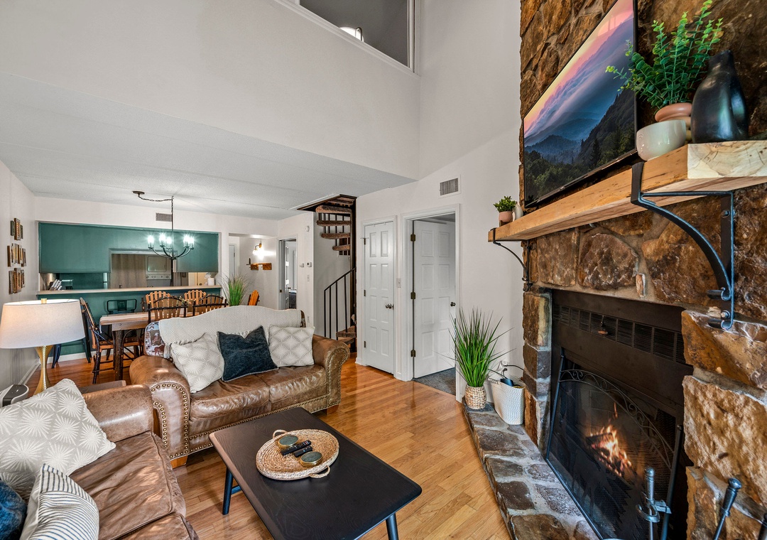 ✔ Open Living Area with Wood Fireplace