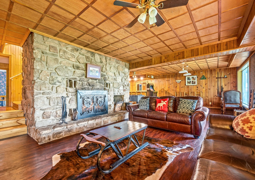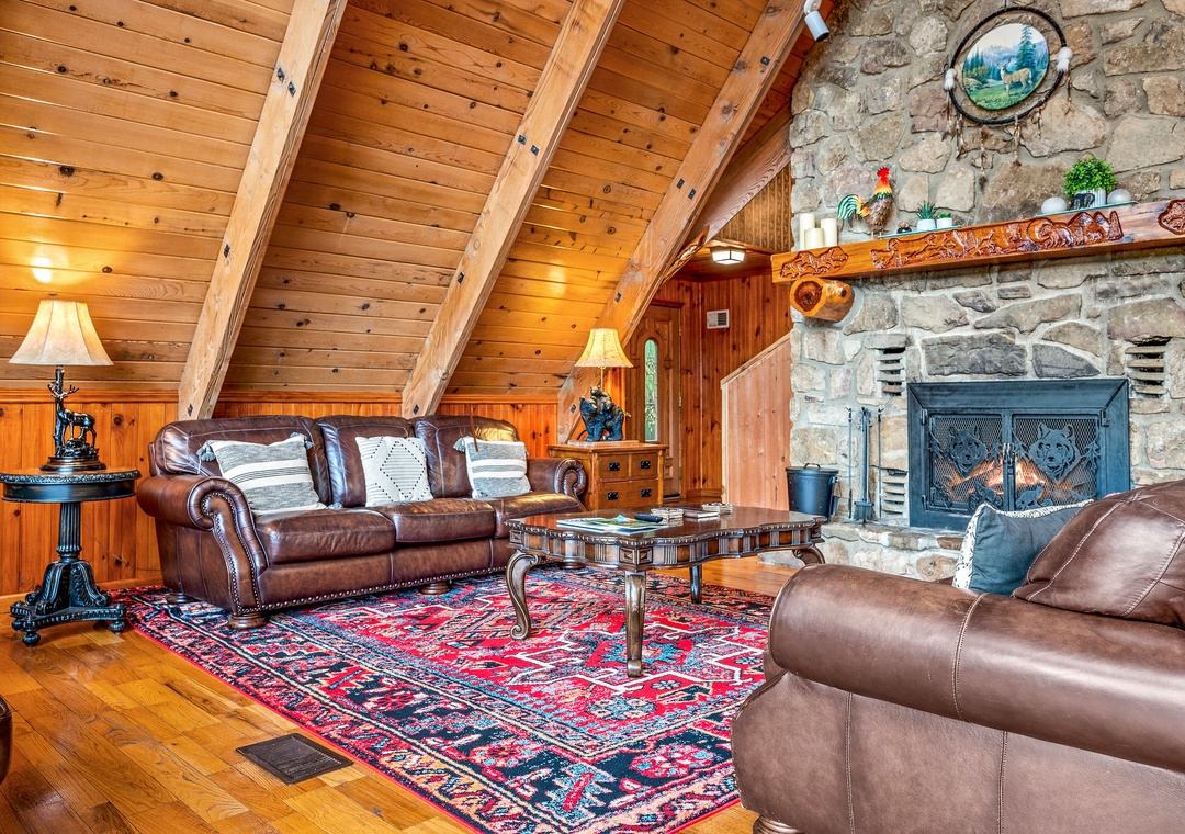 As soon as you enter the fairy tale cabin, you're welcomed by a cozy open-plan living area, designed and furnished with numerous modern amenities and quaint decorations that span throughout the entire interior of this dreamy three-level chalet.