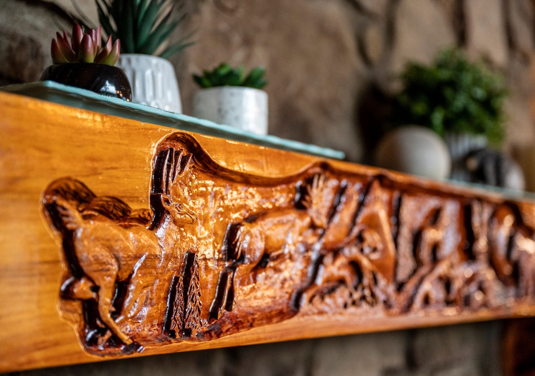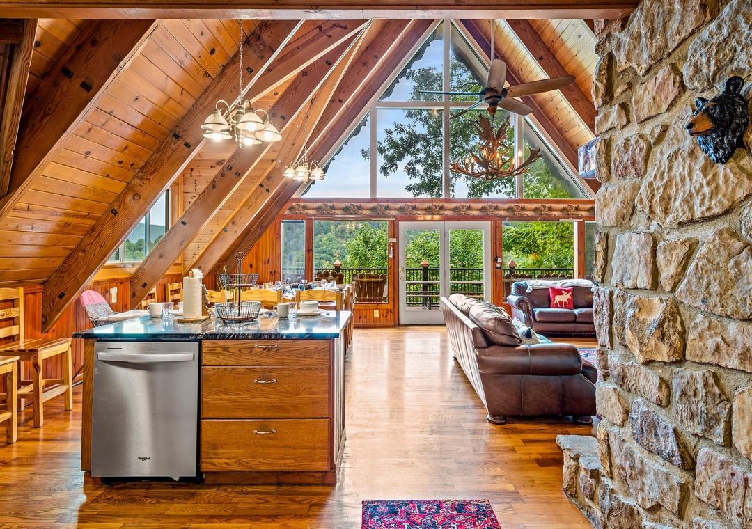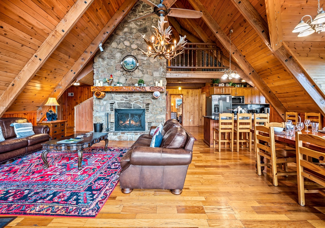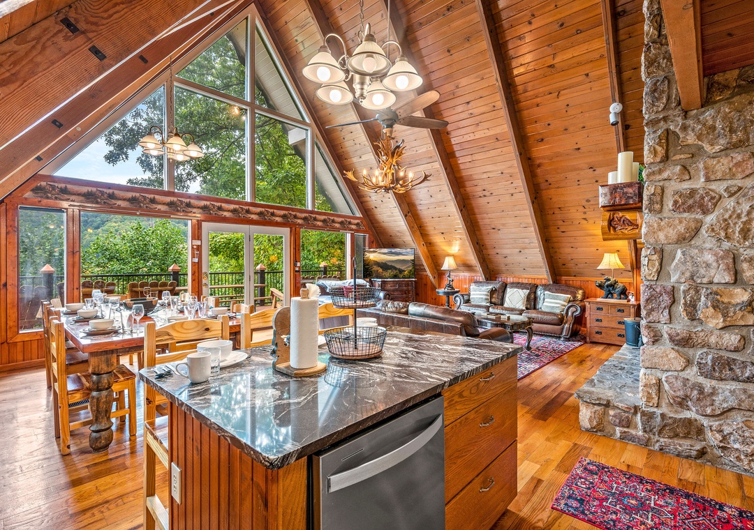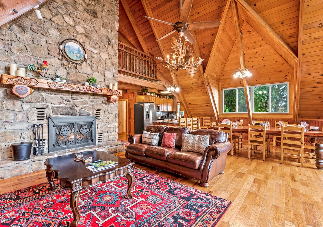 It immediately feels like home, with comfy couches, coffee tables, a cozy fireplace to gather around, and a smart TV for movie nights. Marvel at the mesmerizing view while spending precious moments with your friends and family under the majestic soaring ceilings.