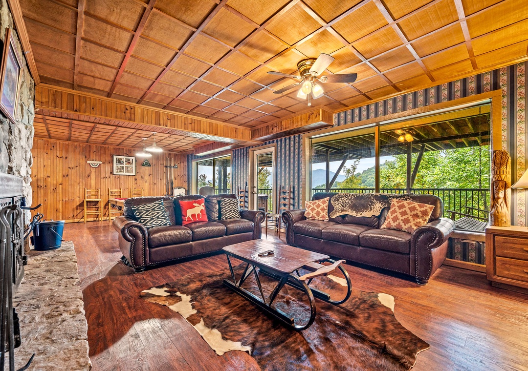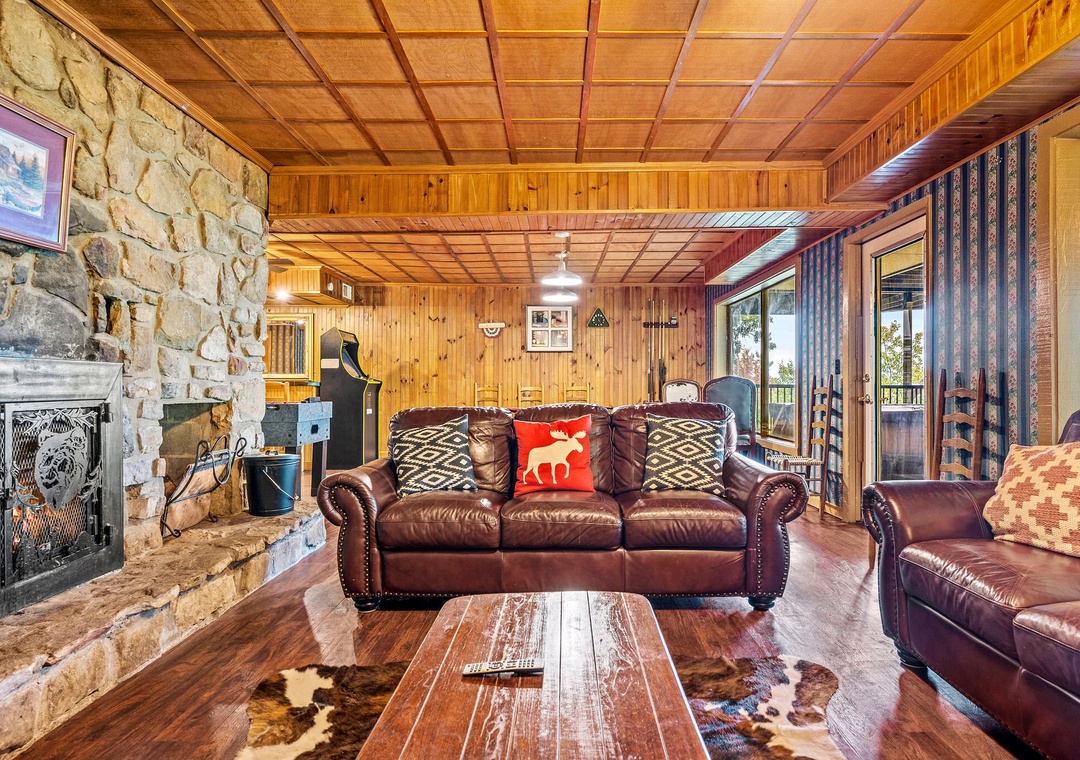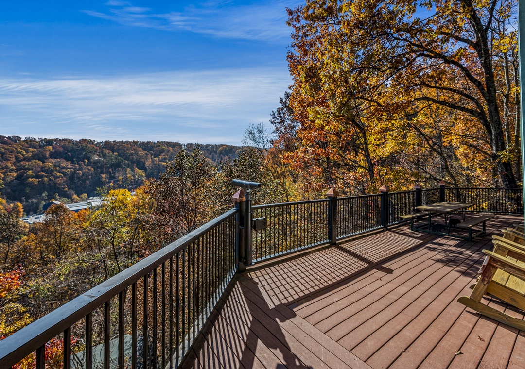 Plain words can't describe the breathtaking view you will get to enjoy during your stay. You can cozy up next to the fireplace and enjoy it from the indoors, or you can step out on the multiple outdoor decks to take it in. Main and basement levels offer a spacious outdoor terrace with different amenities and seating areas. The upper floor has a cute balcony accessed from one of the bedrooms.