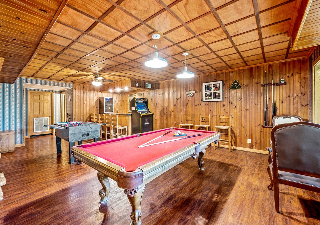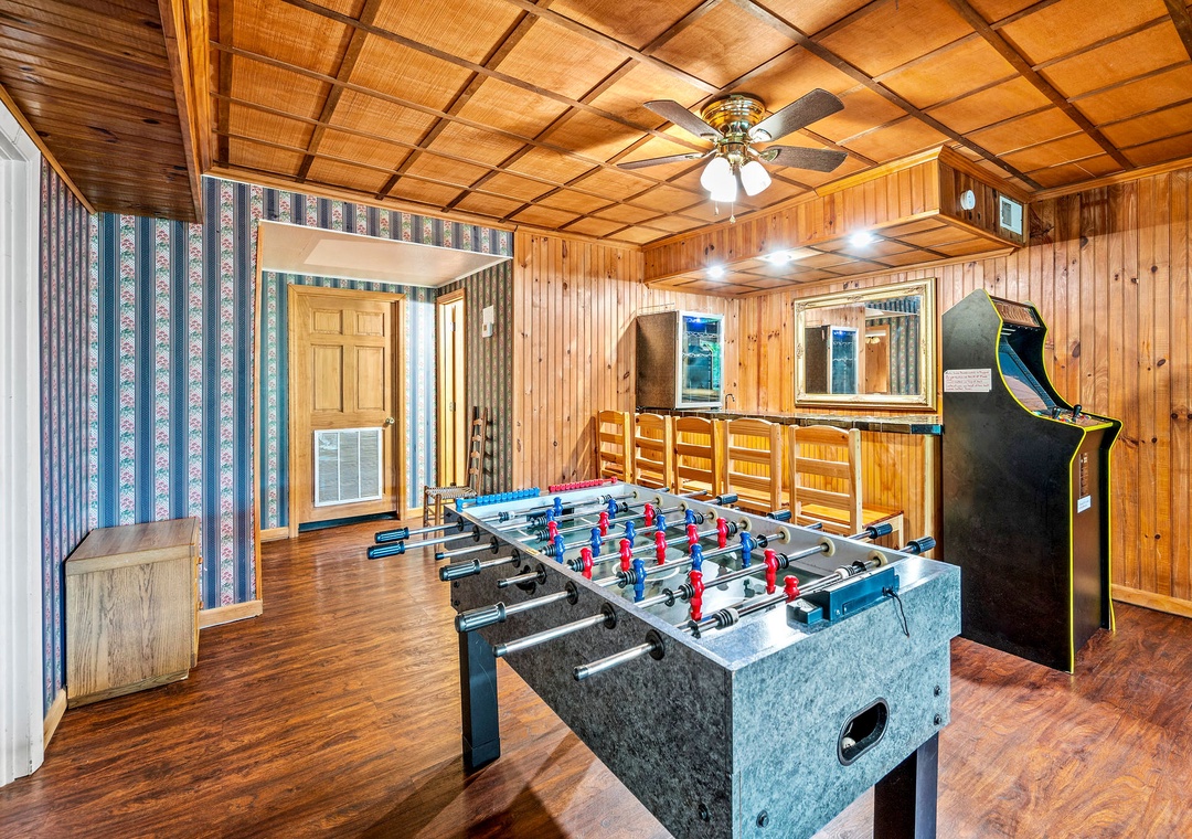 But the best is yet to come – visit the ground floor and have countless hours of fun in the game room, offering entertaining amenities for the entire family, including an arcade, foosball table, pool table and additional lounge area with a fireplace! Once you are ready to rest and relax, please make your way to six comfortable bedrooms.