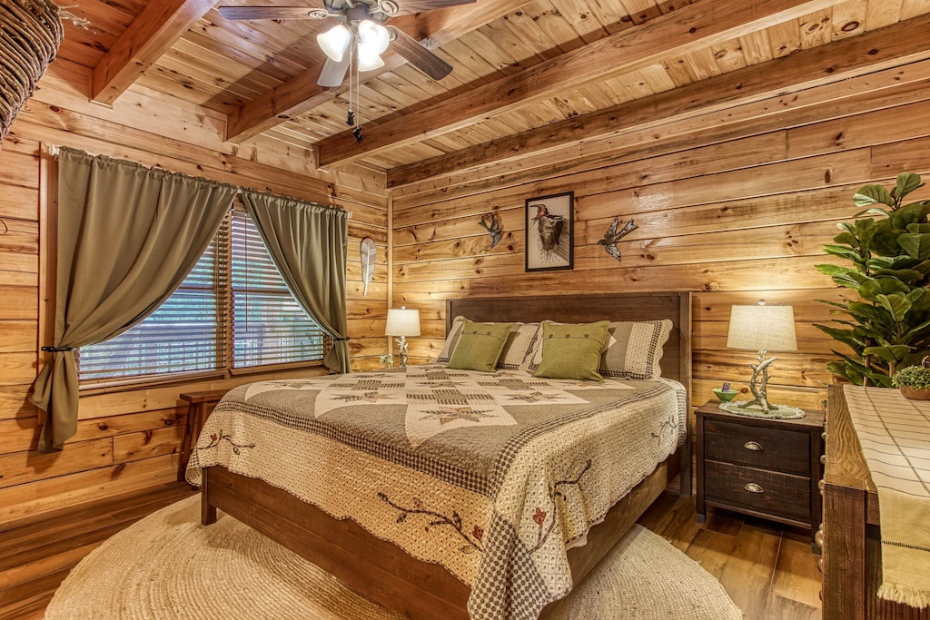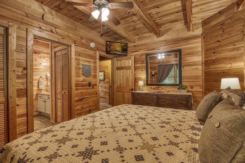 We thoroughly enjoyed our weekend at the cabin. We celebrated an elderly family members 77th birthday. It was easy to get in with only 4 steps and had two bedrooms on the main level so she didn’t have to navigate stairs. There’s a shower with an easy step in and a place for her to sit. The cabin had everything that you would need in the kitchen. Furniture was very comfortable. The mattresses were comfortable and the pillows were very nice. The the absolute best part about the cabin is the location. The outside porch was absolutely stunning! The view was even more stunning. I believe I can spend the rest of my days at this cabin! Although there were other cabins around, when you were on the back porch, it felt totally private. thank you for this wonderful setting up, we plan to make this an annual event for her birthday.- Posted: 7/23/2023