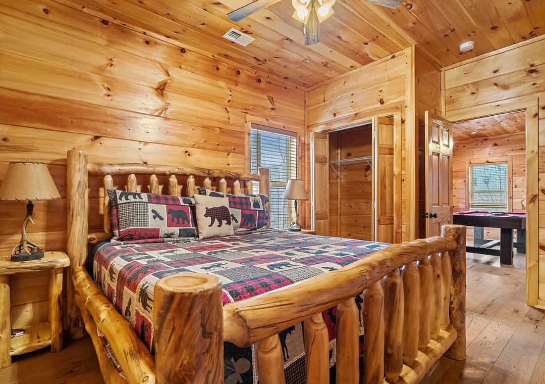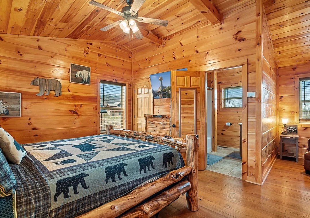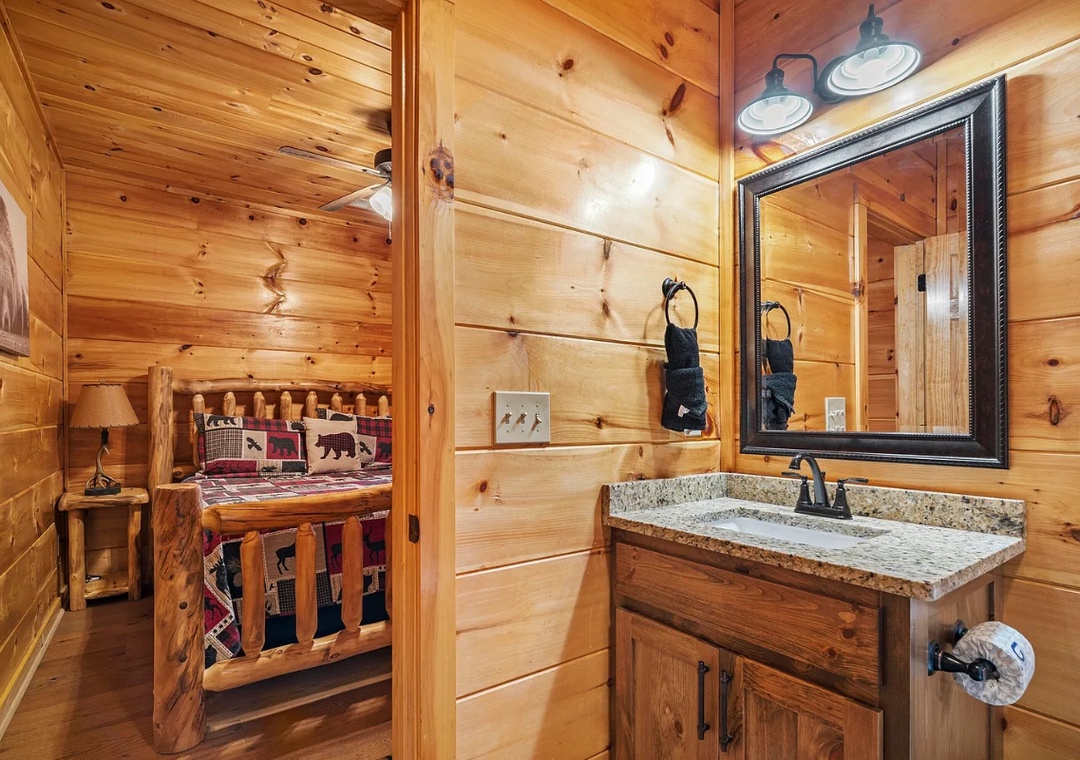 "Hickory Haven" features three beautifully appointed bedrooms, each designed with your comfort in mind. The master suite boasts a plush bed and en-suite bath, providing a serene retreat after a day of adventure. Another bedroom offers a cozy nook with relaxing views, while the other bedroom provides a private oasis with convenient access to the game room. With three full baths, there’s plenty of space for everyone to refresh and rejuvenate.