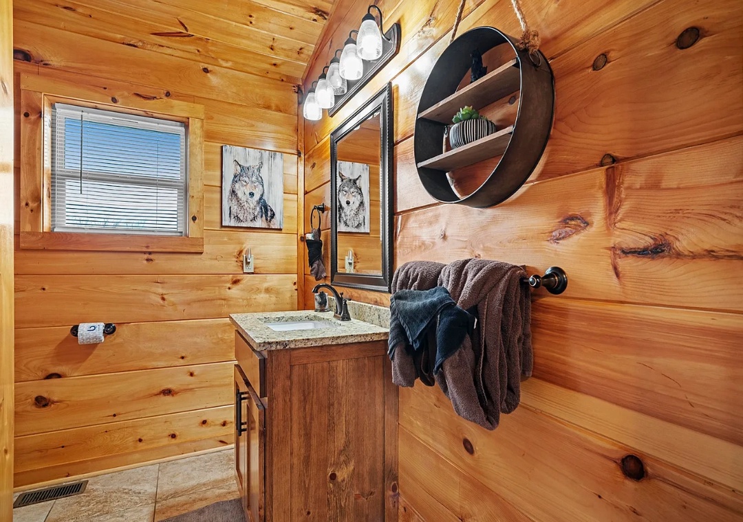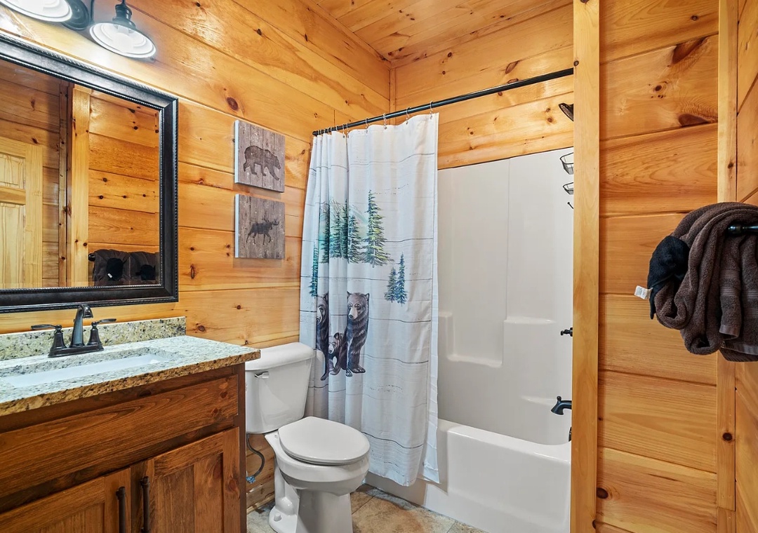 "Hickory Haven" is packed with entertainment options to keep everyone engaged. The lower-level game room is a highlight, offering a pool table, classic arcade games, and plenty of seating for hours of fun and friendly competition. Outside, the lodge’s expansive deck provides ample seating for stargazing or soaking in the hot tub. Gather around the fire pit to roast marshmallows and share stories, creating memories that will last a lifetime. With a location just minutes from the Parkway, you’ll also have easy access to countless attractions, dining, and shopping opportunities. Our cabin is more than just a place to stay; it’s a destination that invites you to relax, recharge, and reconnect with the beauty of the Smoky Mountains.