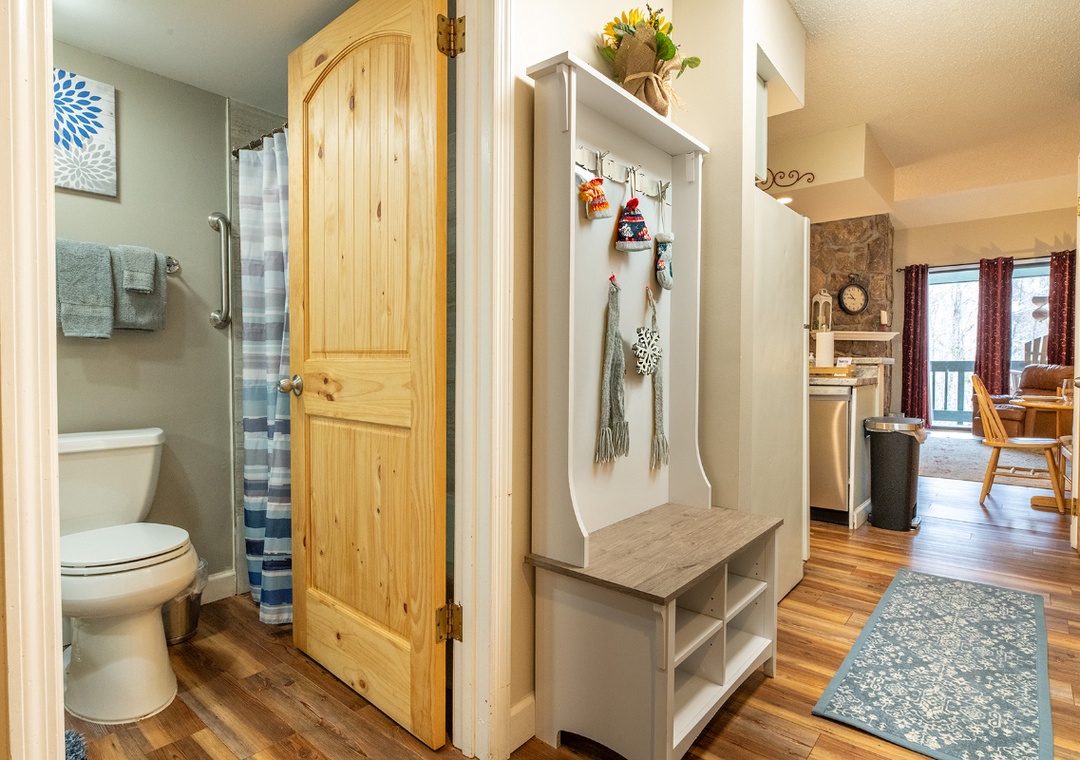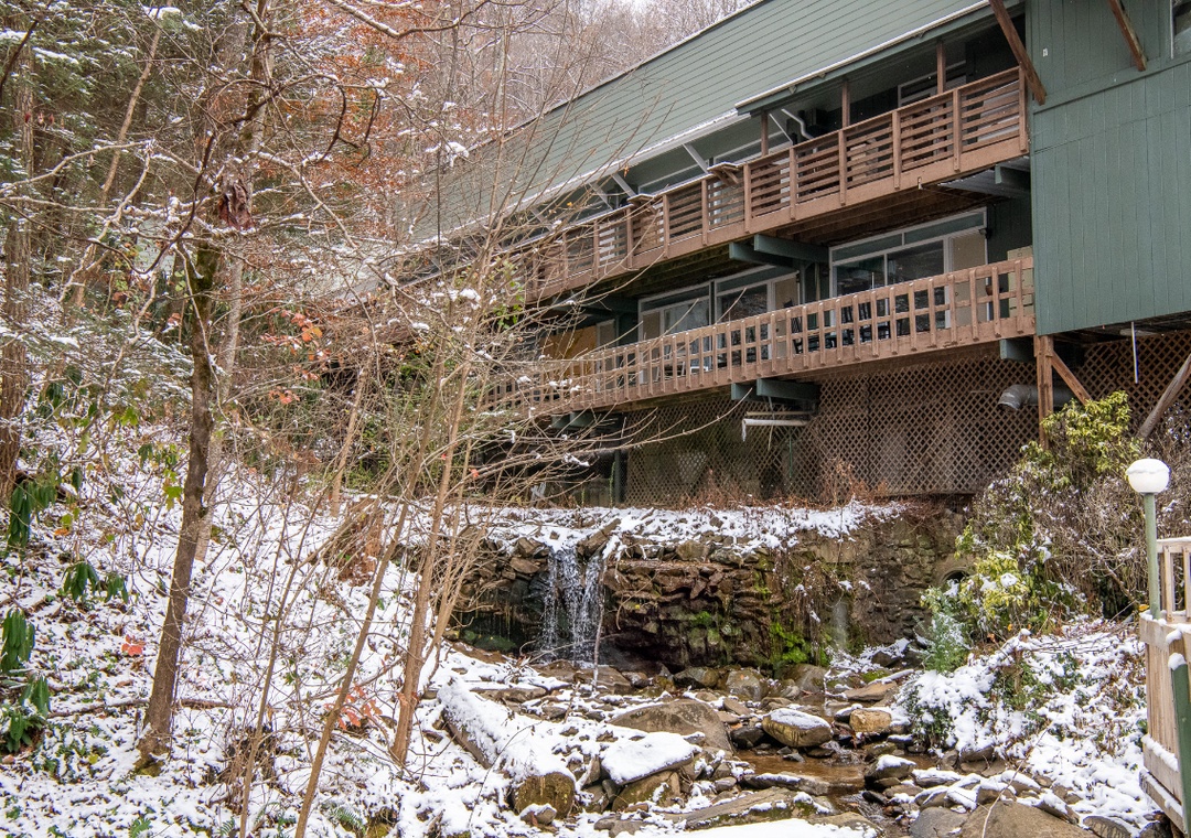 Indoors, the inviting living room is the ultimate hub for cozy gatherings. A 50" TCL Roku TV is perfect for movie nights or binge-watching your favorite TV shows. Outside, the condo offers direct access to nature’s best entertainment. Step onto your private balcony to be greeted by the soothing sounds of a rushing mountain stream and views of a picturesque waterfall. This serene backdrop sets the stage for morning coffee or sunset cocktails. For a refreshing escape during warmer months, there is a seasonal community pool located just outside the building, making it easy to cool off and soak up the sun without going far from your home base. When you’re ready to venture out, Hiker’s Hideaway is just minutes from a variety of attractions. Ober Gatlinburg, a haven for skiing, snowboarding, and year-round mountain activities, is just a short drive away. Downtown Gatlinburg, with its lively shops, restaurants, and must-see spots like Ripley’s Aquarium, is only 10 minutes from your door. For outdoor exploration, the Smoky Mountains offer hiking trails, scenic drives, and endless opportunities to connect with nature.