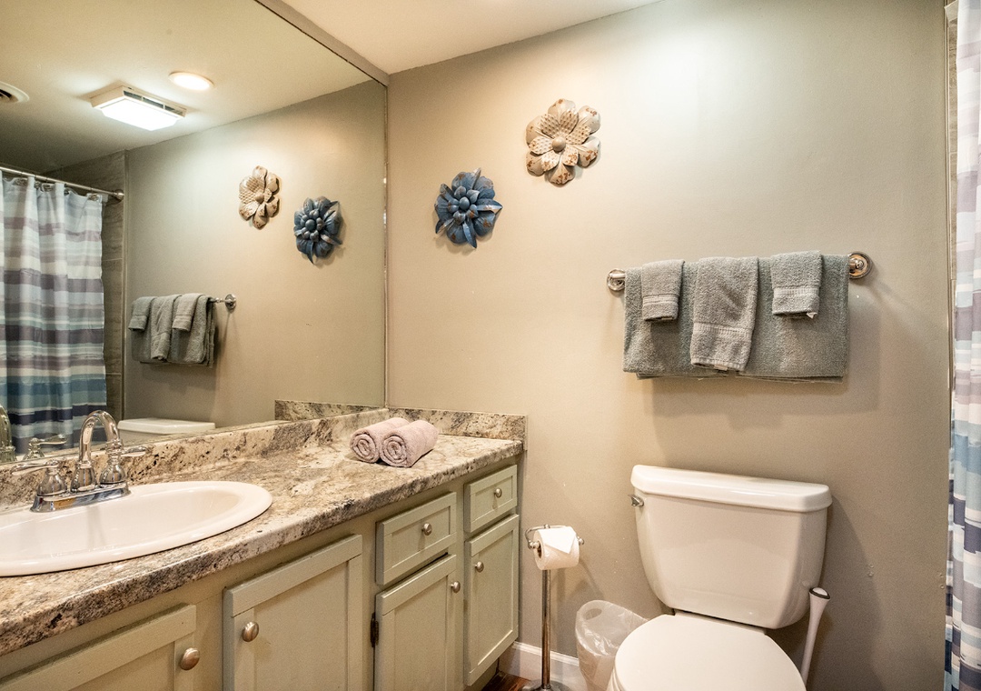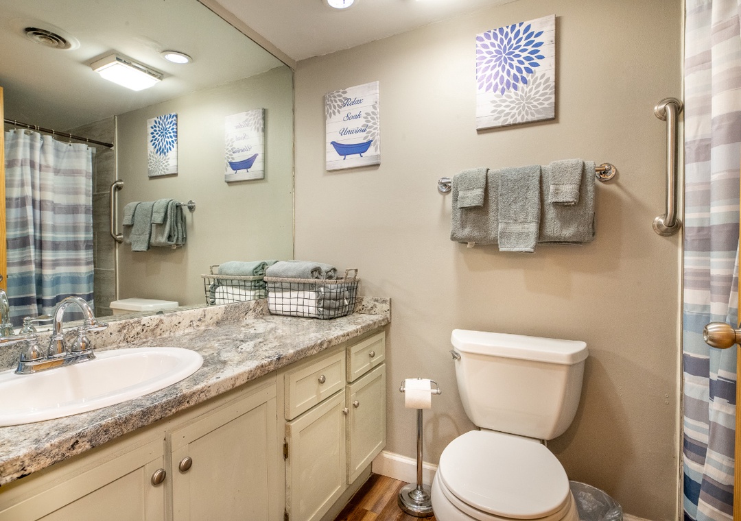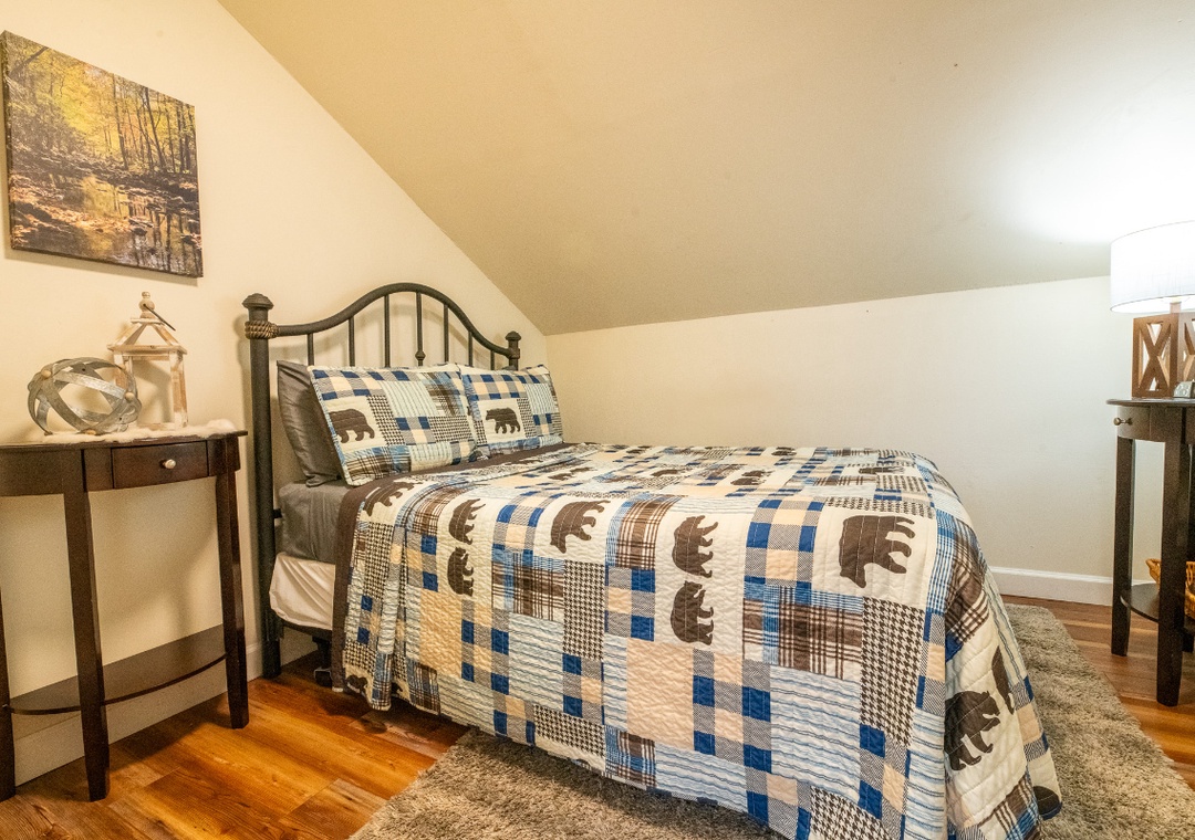 ✔ Bedroom #2 (Upper Level): Cozy Bedroom with a Queen Bed, Attached Full Bathroom with Access to the Loft Full Bathroom with Shower/Tub Combo