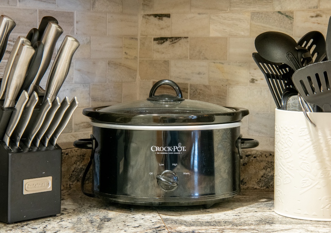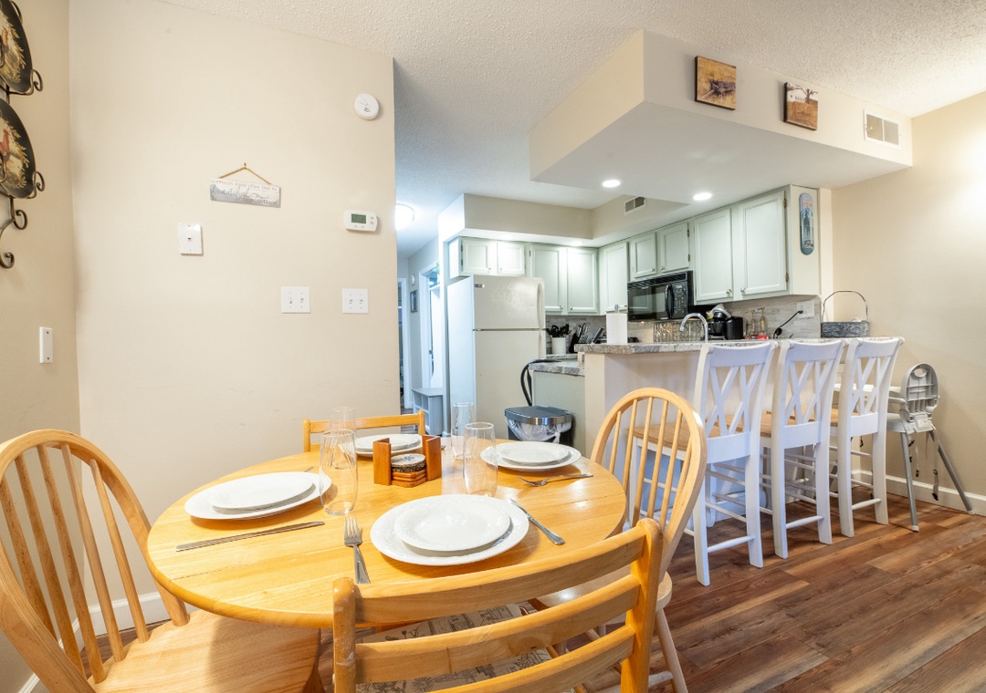 The fully-equipped kitchen boasts modern amenities making it easy to prepare delicious meals for your family or friends. Well-appointed with a full-sized refrigerator, dishwasher, stove, microwave, and other kitchen appliances perfect for making breakfast, lunch, or dinner throughout your stay! All pots, pans, glasses, plates, silverware, etc. are also there for you! Gather around the inviting chic dining table or the nearby breakfast bar to share stories and laughter as it invites you to savor each bite while taking in the natural beauty of the surroundings.
