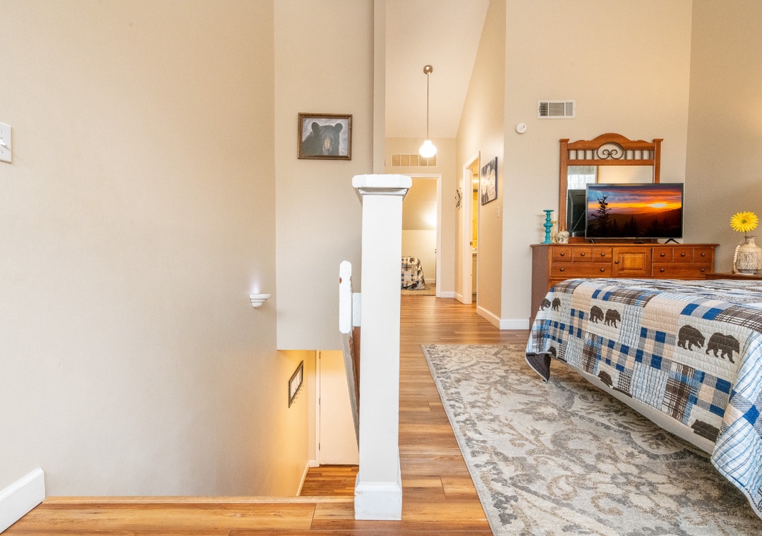 ✔ Relaxing Queen Bed on the Loft and a Queen Sleeper Sofa in the Living Room for additional sleeping space