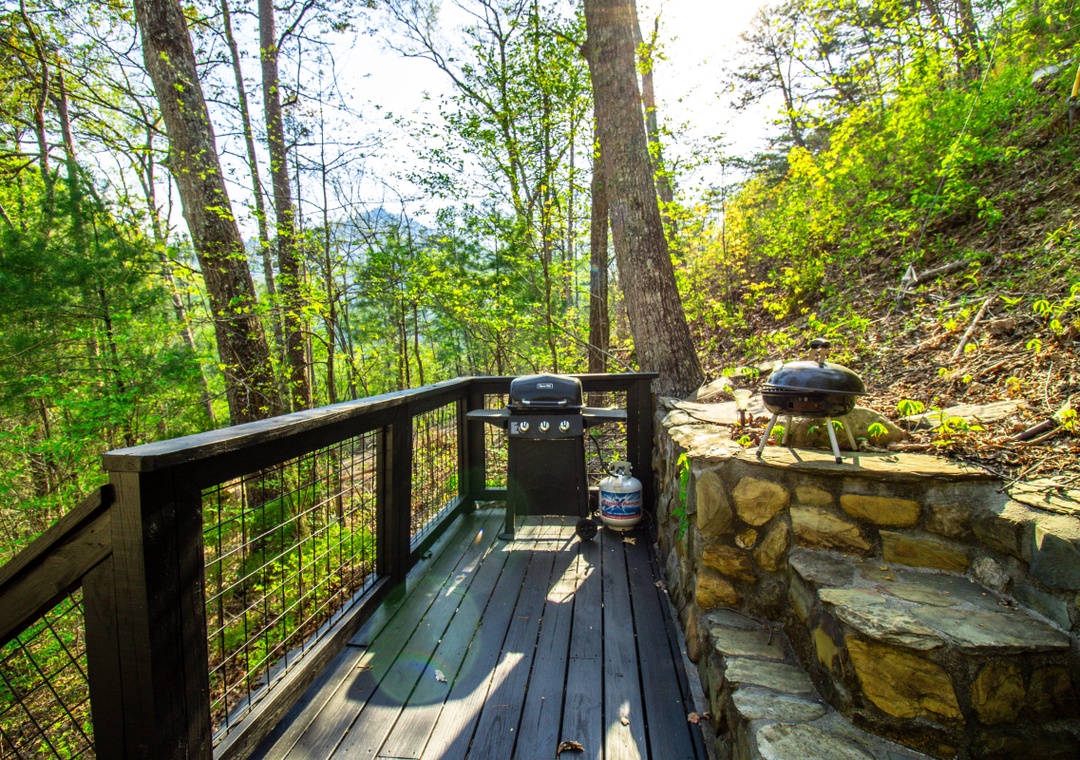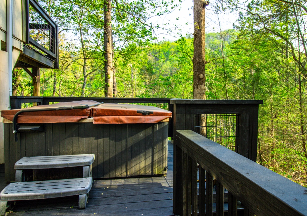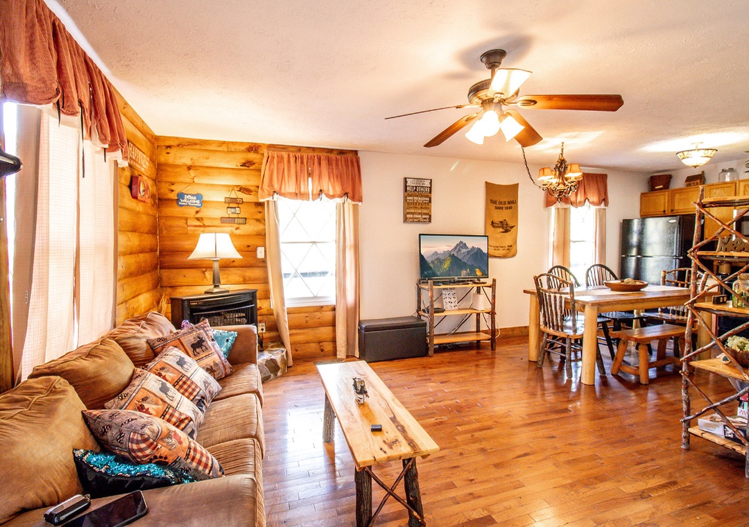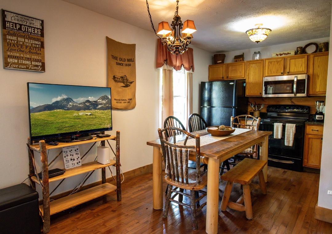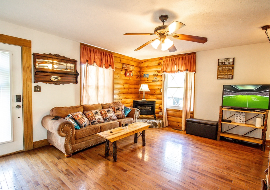 Start your day with a short drive into the heart of Pigeon Forge, where you'll find Dollywood, The Island, go-karts, mini-golf, outlet shopping, and a wide range of local restaurants and family-friendly shows. Want to explore even more? The cabin is also within easy reach of downtown Gatlinburg and the scenic Great Smoky Mountains National Park. When you're ready to take a break, come home to a full lineup of entertainment options at the cabin. The living room is a welcoming space with a glowing propane fireplace and a 42" LG TV equipped with a Roku box and DVD player. If outdoor entertainment is more your style, head to the right side of the property where you’ll find the bubbling hot tub perfect for soaking under the stars after a busy day. Next to it is the propane grill, ready for everything from burgers to barbecue ribs. You’ll also have seasonal access to the Shagbark community pool, a great spot to cool off and kick back on hot summer days. At “Hillside Hideaway,” you’re never far from the fun, but you’ll always have a quiet, comfortable place to return to.