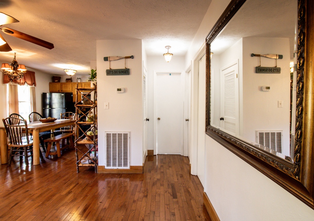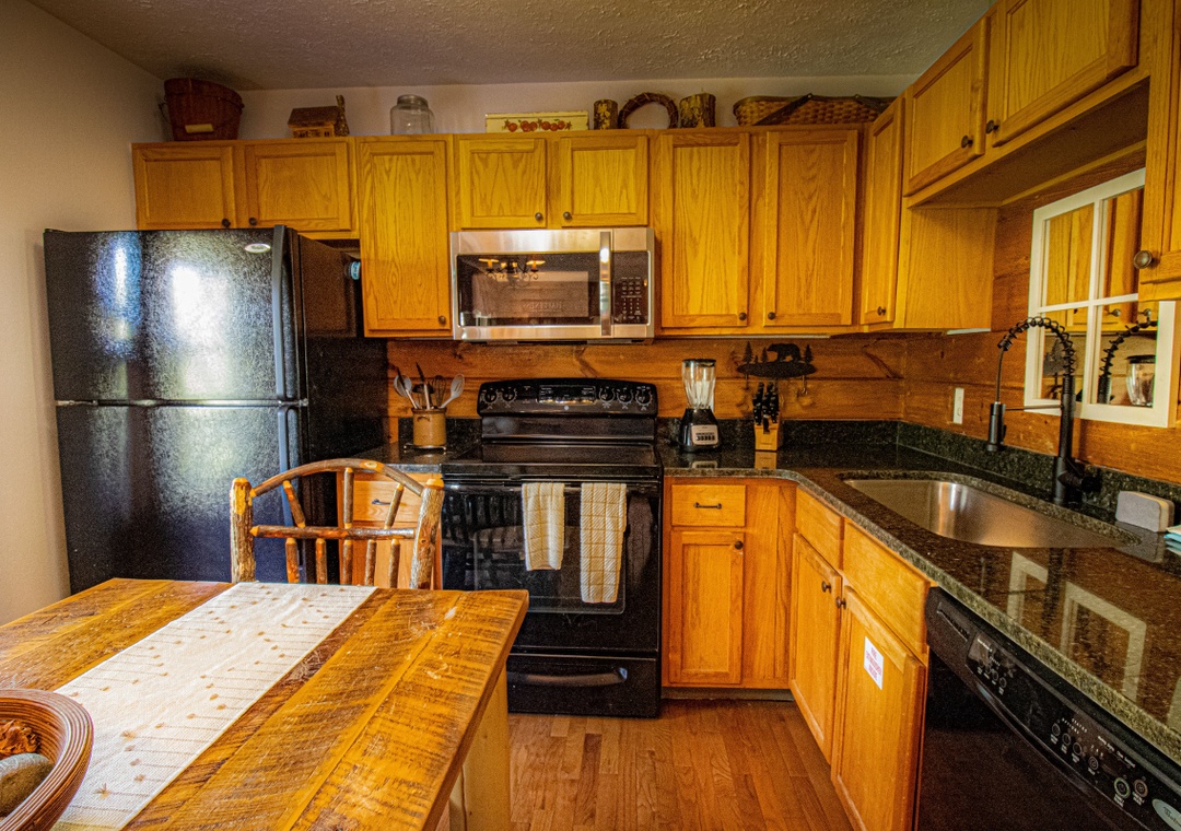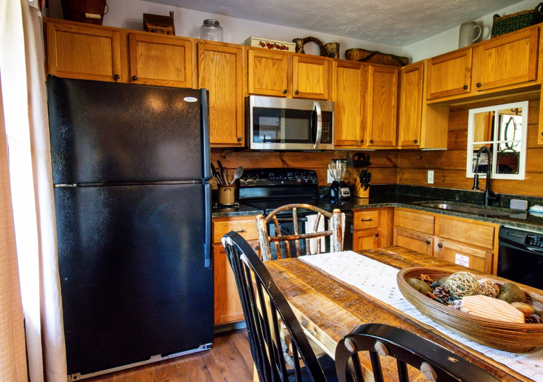 The fully-equipped kitchen boasts modern amenities, making it easy to prepare delicious meals for your family or friends. Well-appointed with a full-sized refrigerator, dishwasher, stove, microwave, and other kitchen appliances perfect for making breakfast, lunch, or dinner throughout your stay! All pots, pans, glasses, plates, silverware, etc., are also there for you! Gather around the inviting dining table to share stories and laughter, as it invites you to savor each bite while taking in the natural beauty of the surroundings.