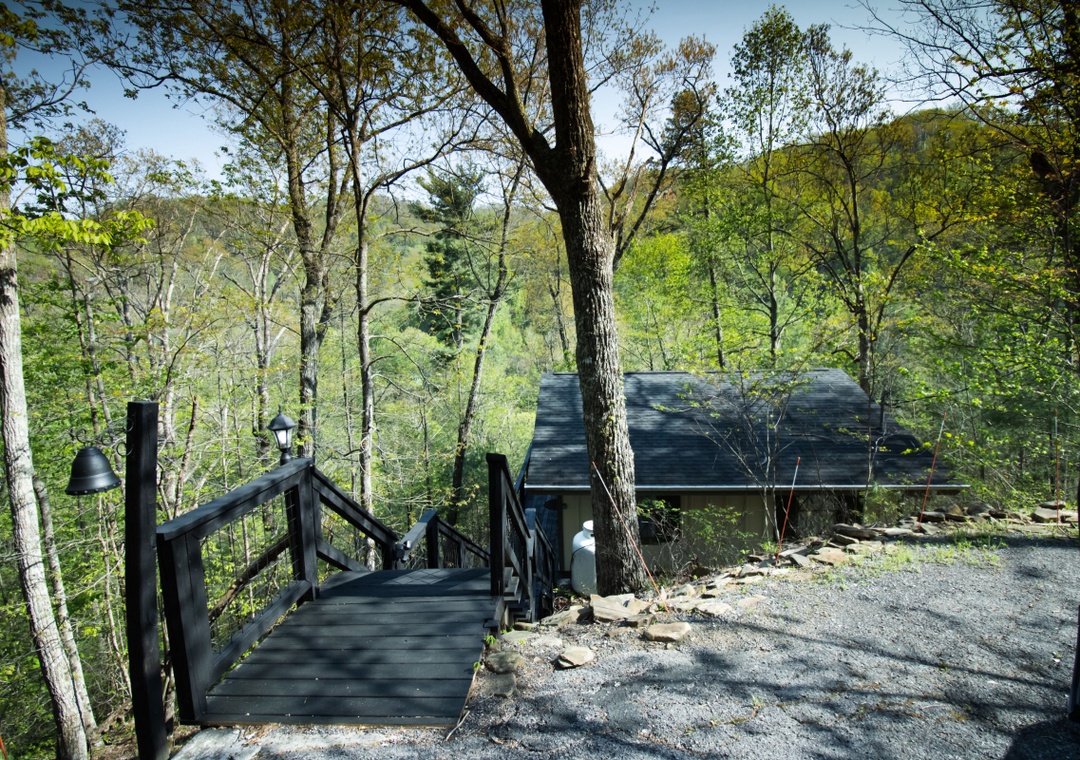 Drive in and out was not too scary for those not familiar with mountain driving (like us) There’s one switchback on the way up and it’s on a paved portion of the road, so it’s not scary. Backing into the cabins driveway was best, so we could pull right out and leave the opposite direction of coming in.