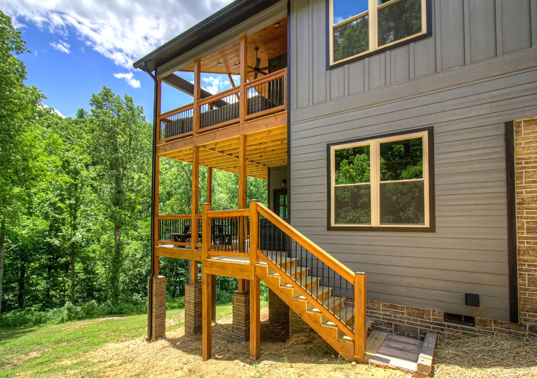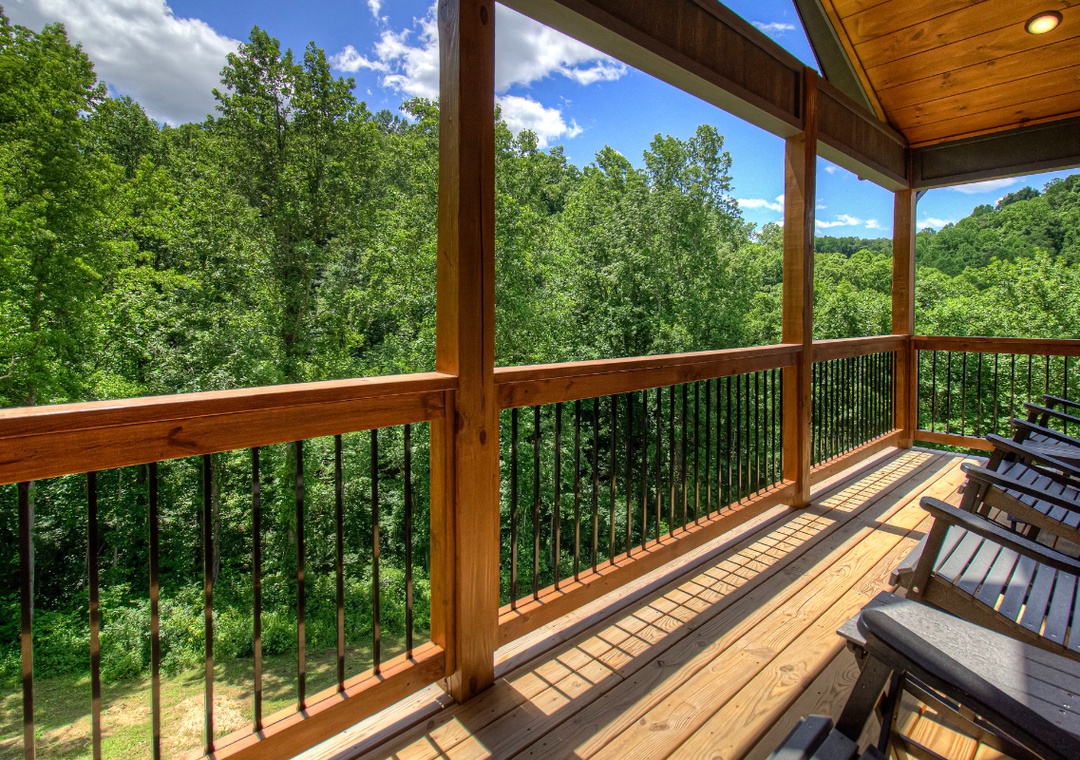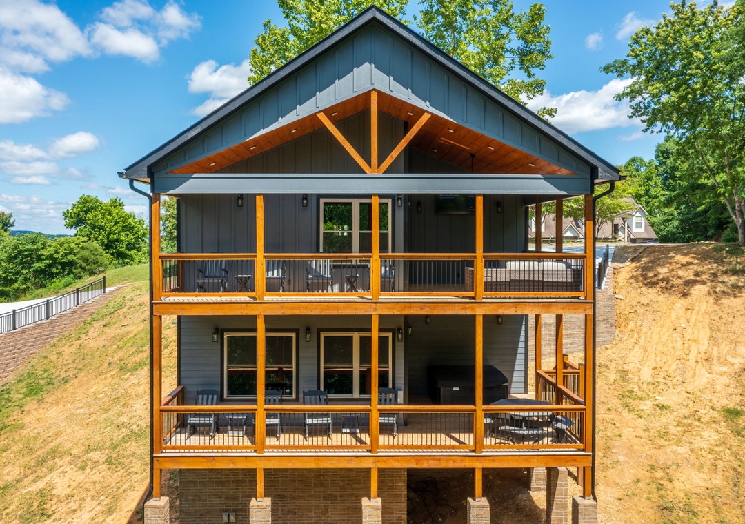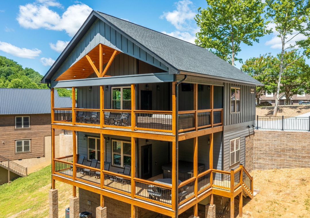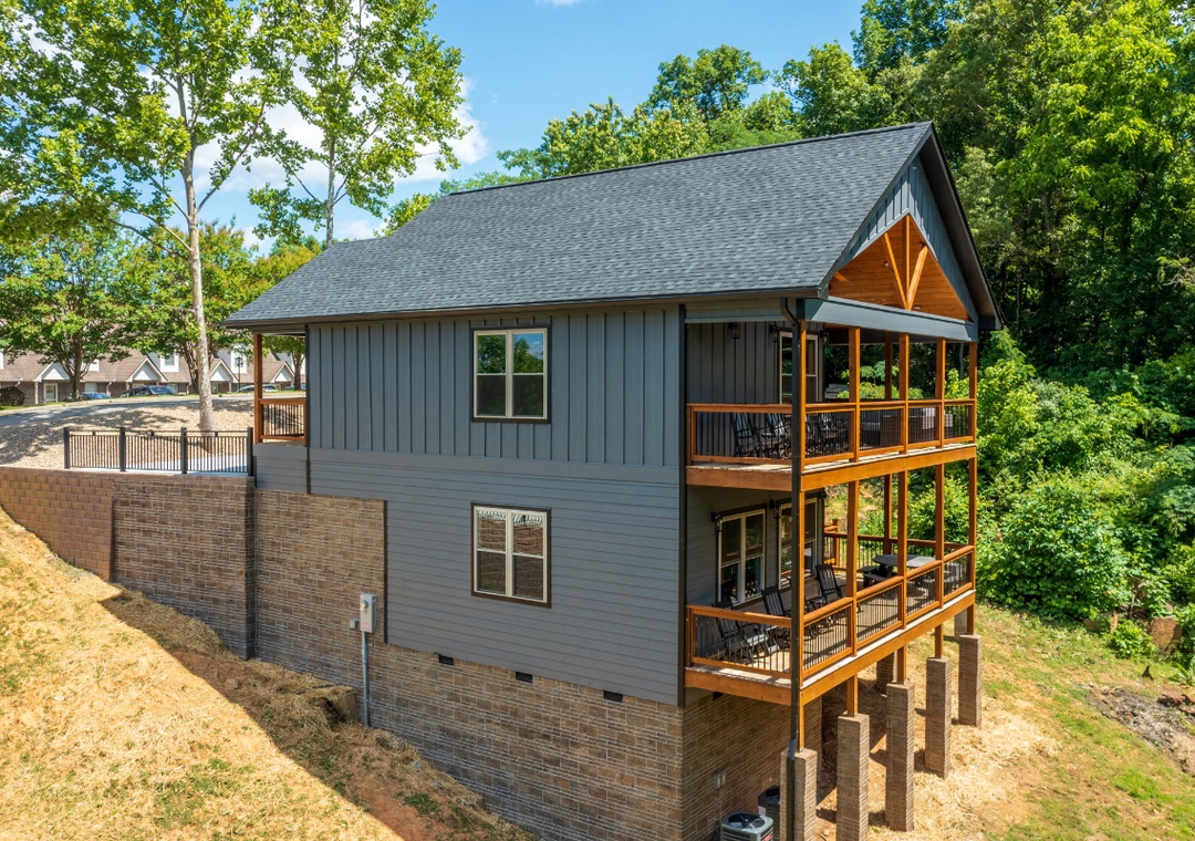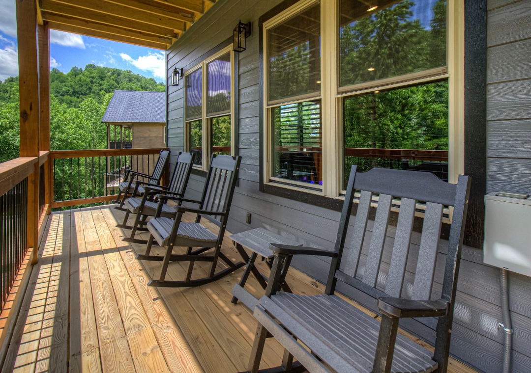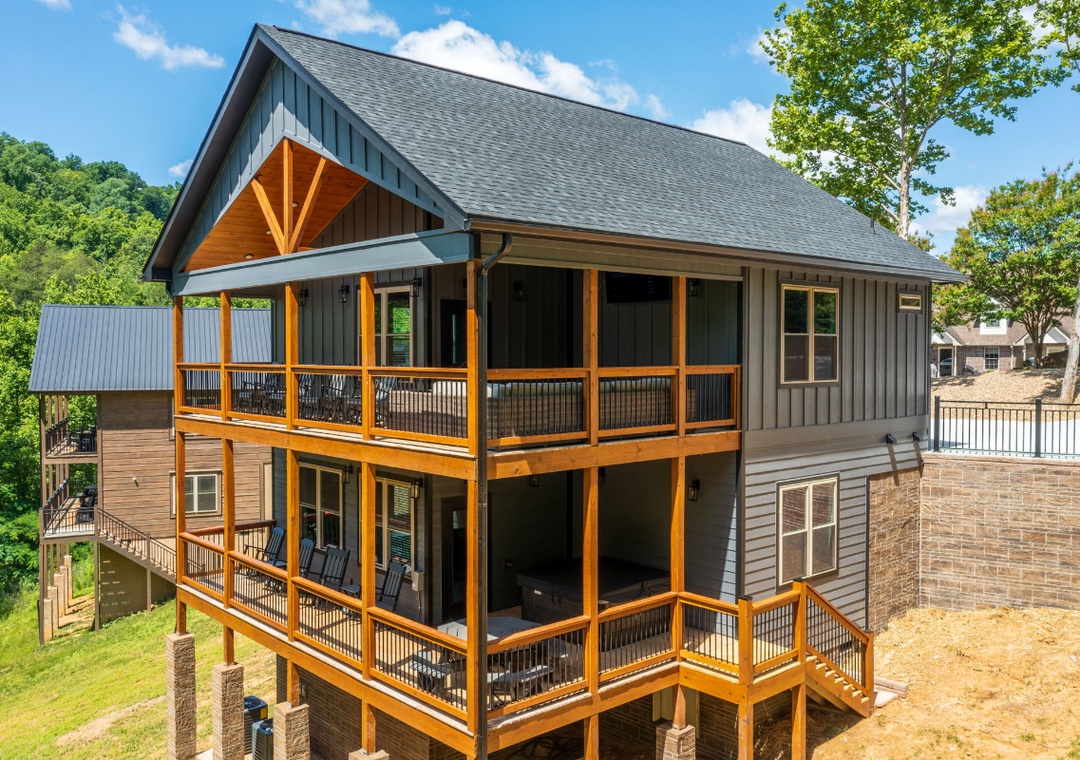 The heart of the entertainment lies on the spacious lower level, where a lively game room invites you to let loose and enjoy some friendly competition. Challenge your family to an exciting air hockey match, or dive into a bit of nostalgia with not one, but two multicade arcade machines loaded with all the classic games, perfect for the kids and the young at heart alike. Step outside to the expansive upper deck, where a 65” Smart TV and plush seating area turn the back porch into your own private outdoor theater. If relaxation is your idea of entertainment, the private hot tub on the lower deck takes center stage. Imagine slipping into the warm, bubbling water after a long day exploring Pigeon Forge or hiking in the Great Smoky Mountains. Of course, no cabin experience is complete without a touch of classic outdoor fun, and Hilltop Haven delivers with a park-style grill in front of the property. Fire it up for a family barbecue, sizzling burgers, or steaks while you enjoy the fresh mountain breeze. Hilltop Haven also puts you close to some of the best attractions the Smoky Mountains have to offer. Just a short drive away, you’ll find all the excitement, where you can easily spend the day riding roller coasters and enjoying shows.