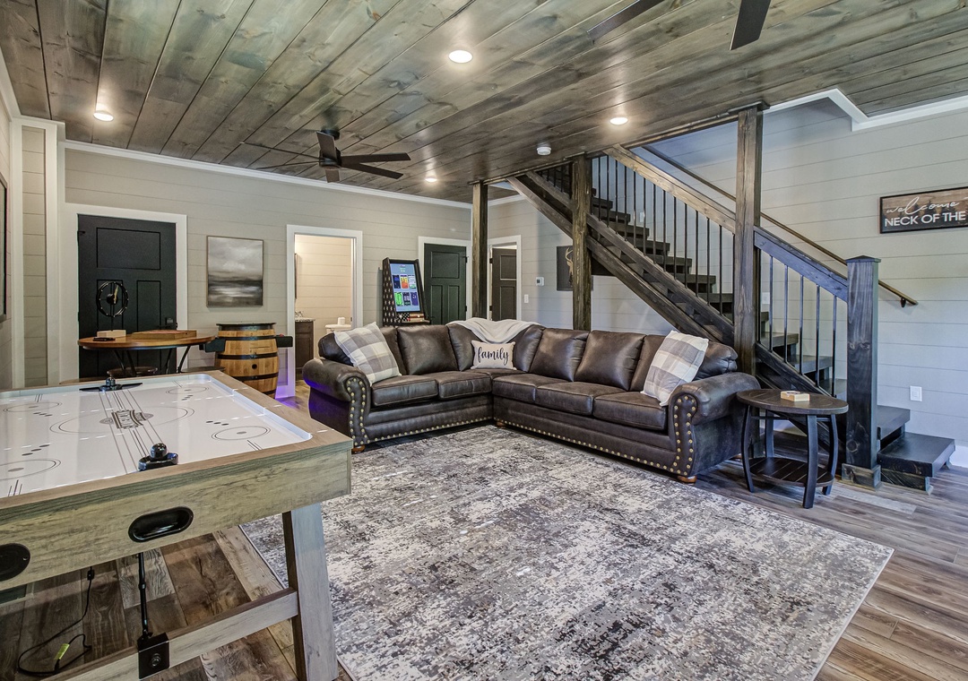 ✔ A Queen Sleeper Sofa, a Queen Futon, and a Half Bathroom in the Game Room for additional sleeping space