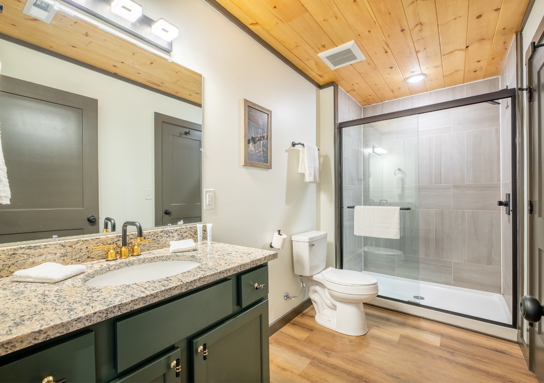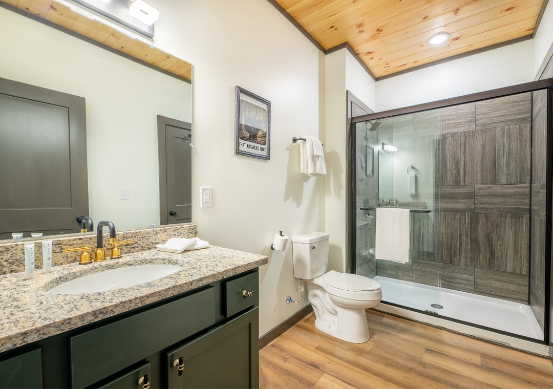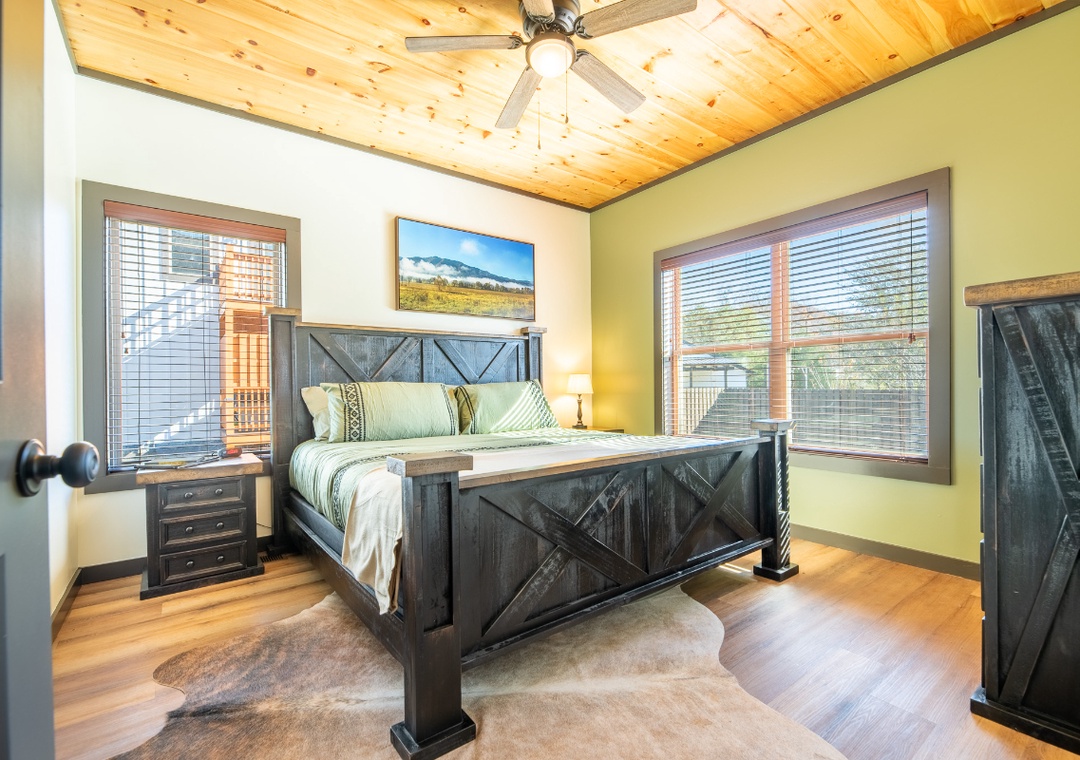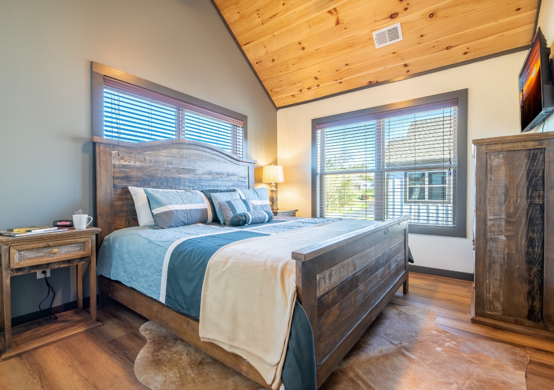 ✔ Bedroom #1 (Main Level): Spacious Bedroom with a King-Bed and Flatscreen TV; Attached Full Bathroom with Stand Up Shower