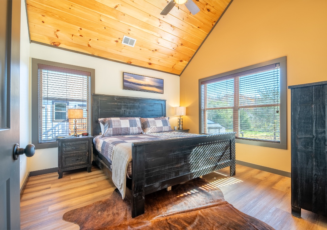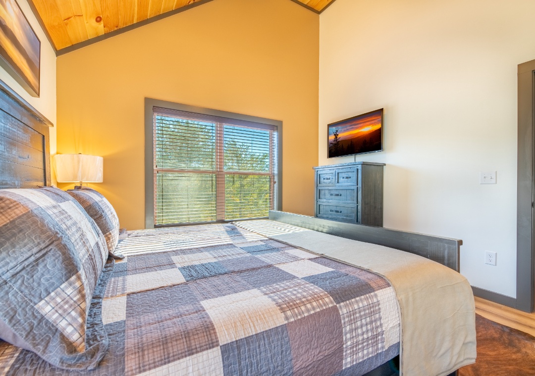 ✔ Bedroom #3 (Upper Level): Relaxing Bedroom with a King-Bed and Flatscreen TV; Attached Full Bathroom with Shower/Tub Combo