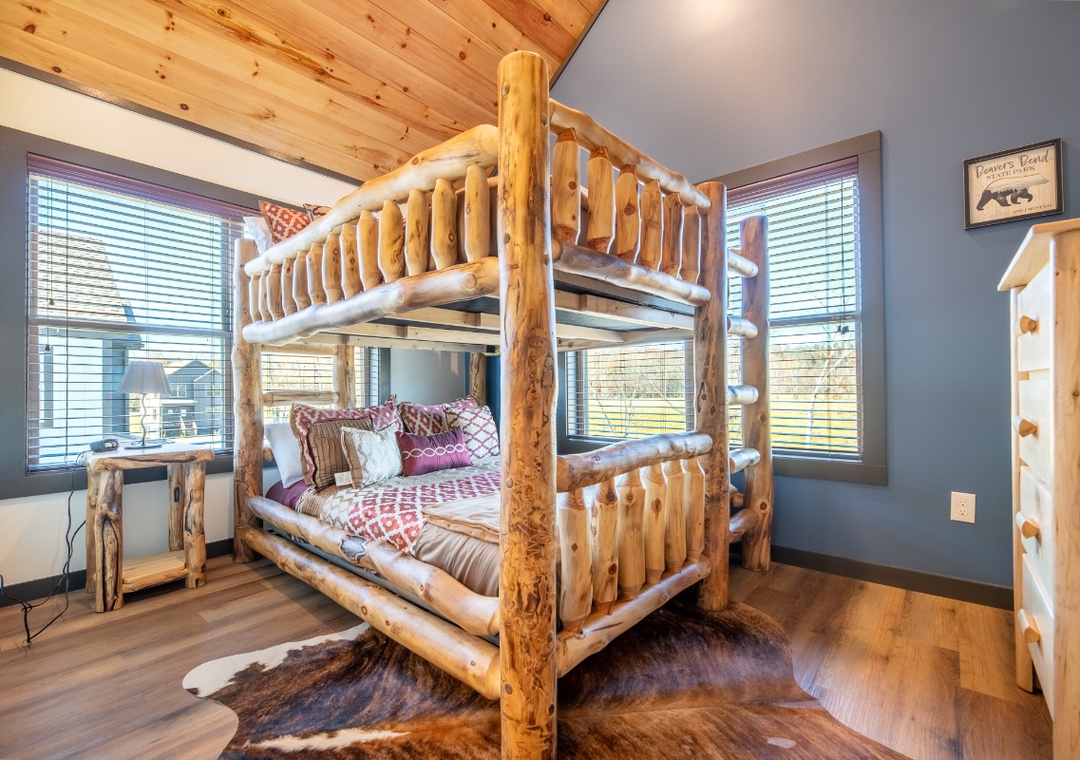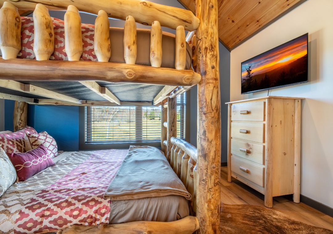 ✔ Bedroom #4 (Upper Level): Inviting Bedroom with a Queen-over-Queen Bunk Bed and Flatscreen TV; Attached Full Bathroom with Stand Up Shower