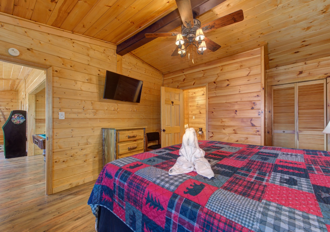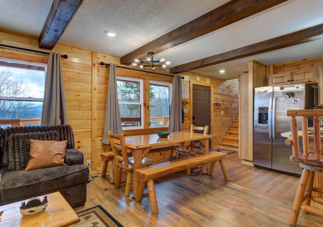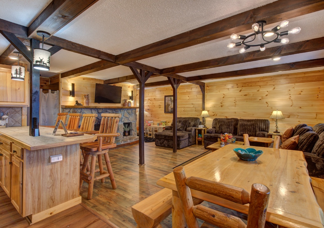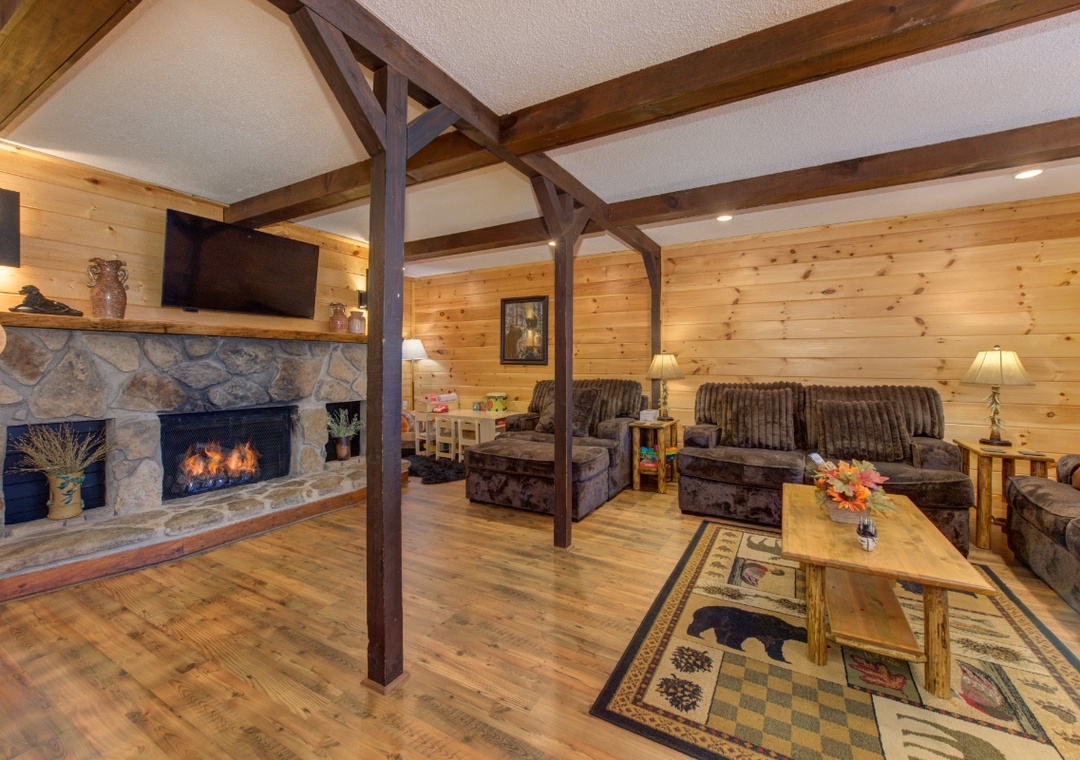 Honey Bear Lodge is a four bedroom Smoky Mountain cabin for families who want to actually enjoy their time together — not just survive the trip. Cozy mountain soul with modern tech and thoughtful upgrades.