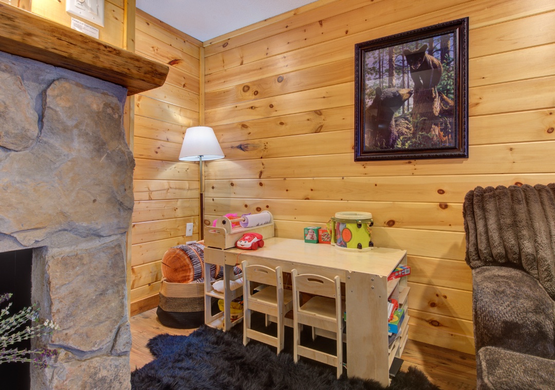 Here you'll find a kid-sized table with seating, games and puzzles for little hands, and board games for when the whole family wants to play. The layout lets kids do their thing while you're ten feet away, coffee in hand, actually relaxing.