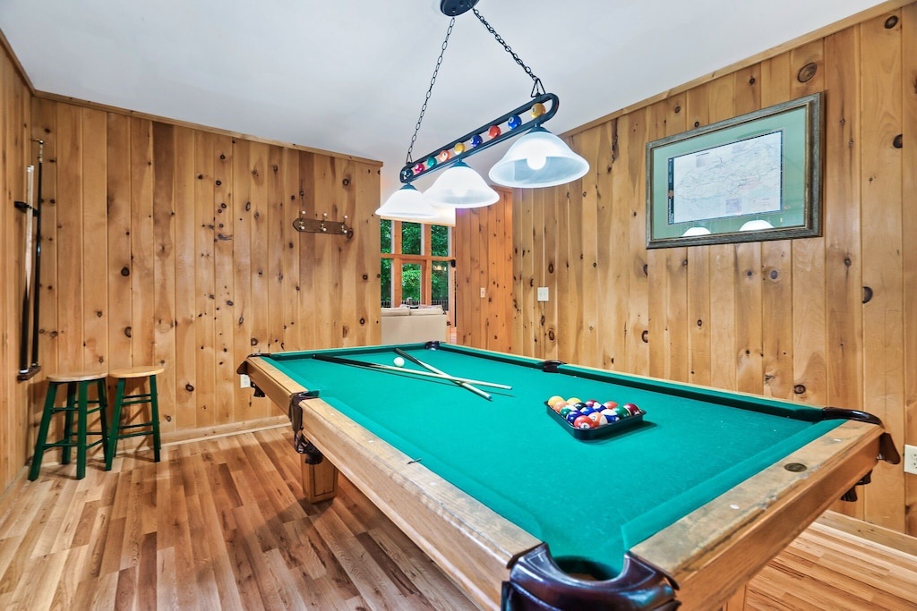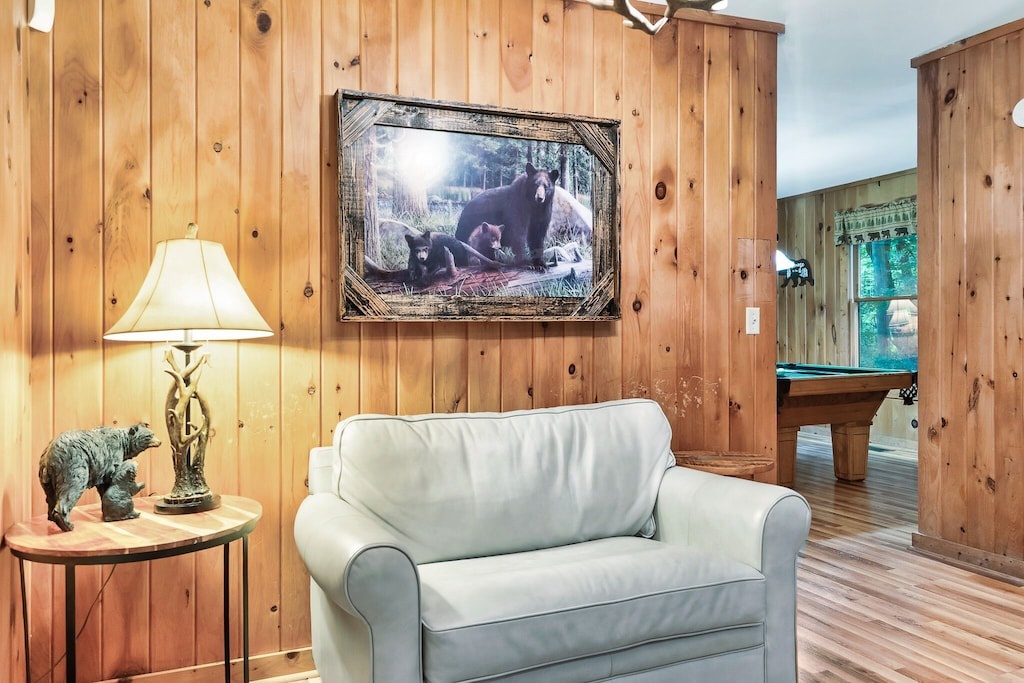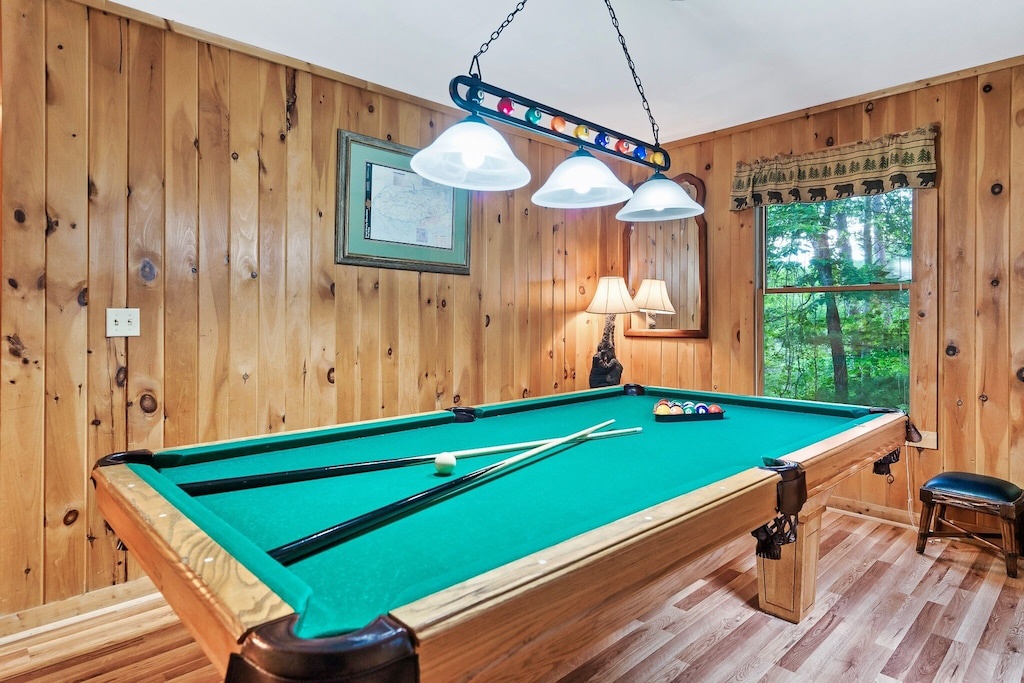 Knotty Nice is the perfect place to both relax and play! Enjoy family movie night (or the big game) in the living room while the fireplace roars in the distance. Step into the game room and enjoy some friendly competition with a round or two of pool. Or, step outside, kick back in a rocking chair and take in the gorgeous views while you sip your morning cup of coffee or evening glass of wine. And you and the kiddos (and adults alike) will love relaxing in the bubbling hot tub while taking in that fresh Smoky Mountain air!