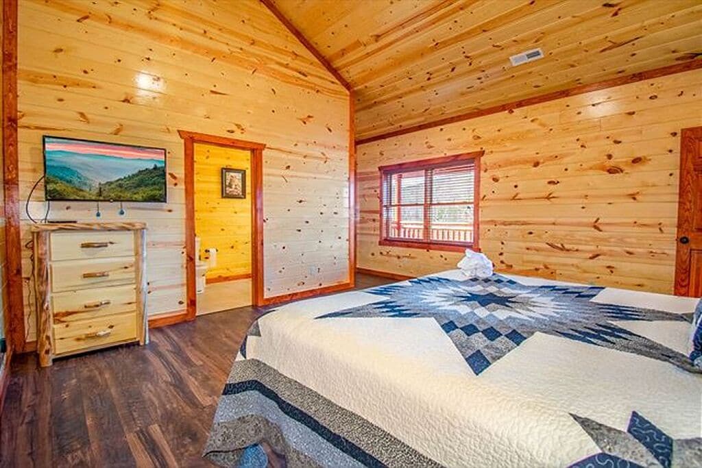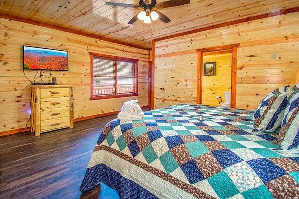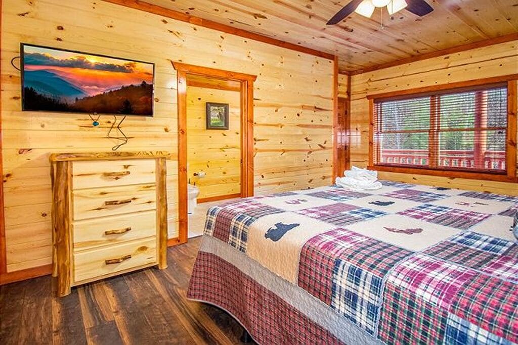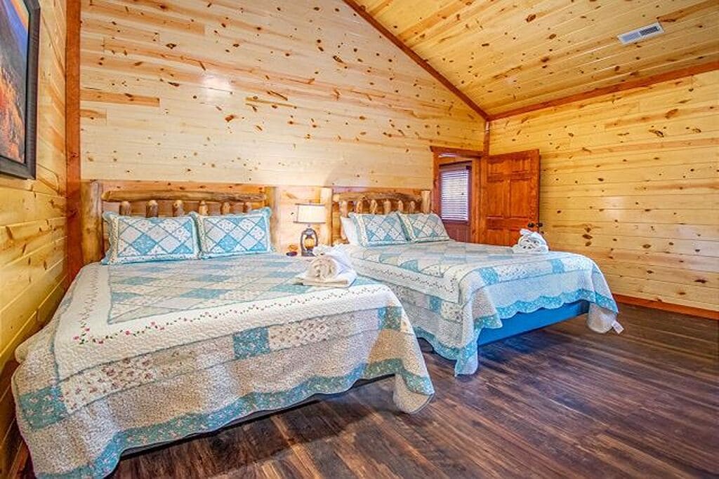 Beautiful cabin for our family trip. Each bedroom was very spacious, had its own bath great for privacy. The living areas were big enough for our large group. Plenty of plates and stuff. Great drive to pigeon Forge not those small windy roads. Plenty of outdoor activities close by, restaurants and shopping..- Reviewed On: 9/4/2023
