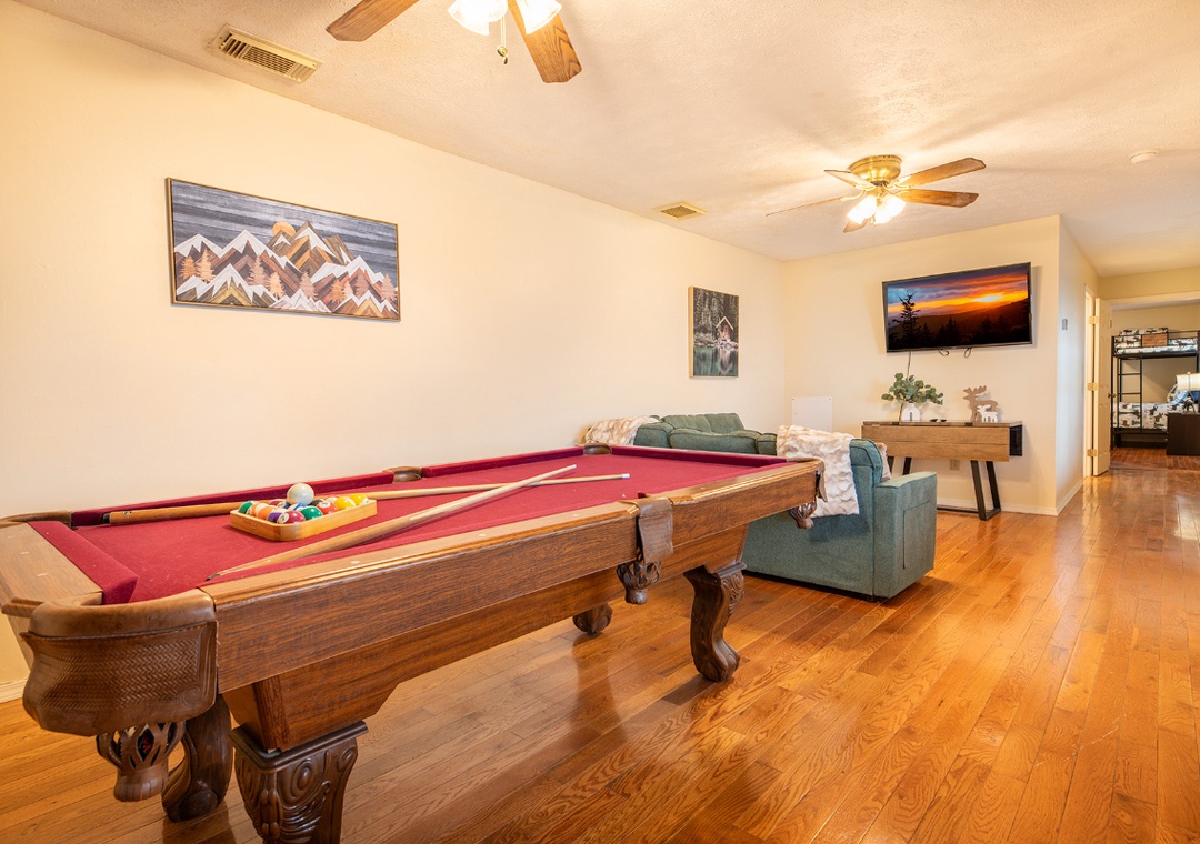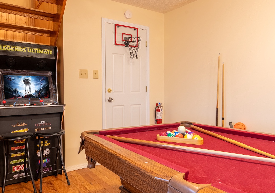 ✔ Pool Table, Cornhole, Multicade, Basketball Game, Board Games and Karaoke