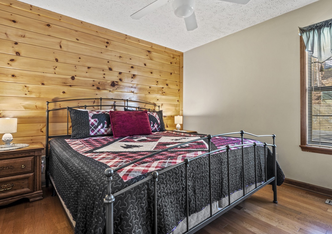 ✔ Bedroom #1 (Main Level): Spacious bedroom with King-sized bed & flat screen TV with DVD player; Access to full bathroom with Shower/Tub Combo