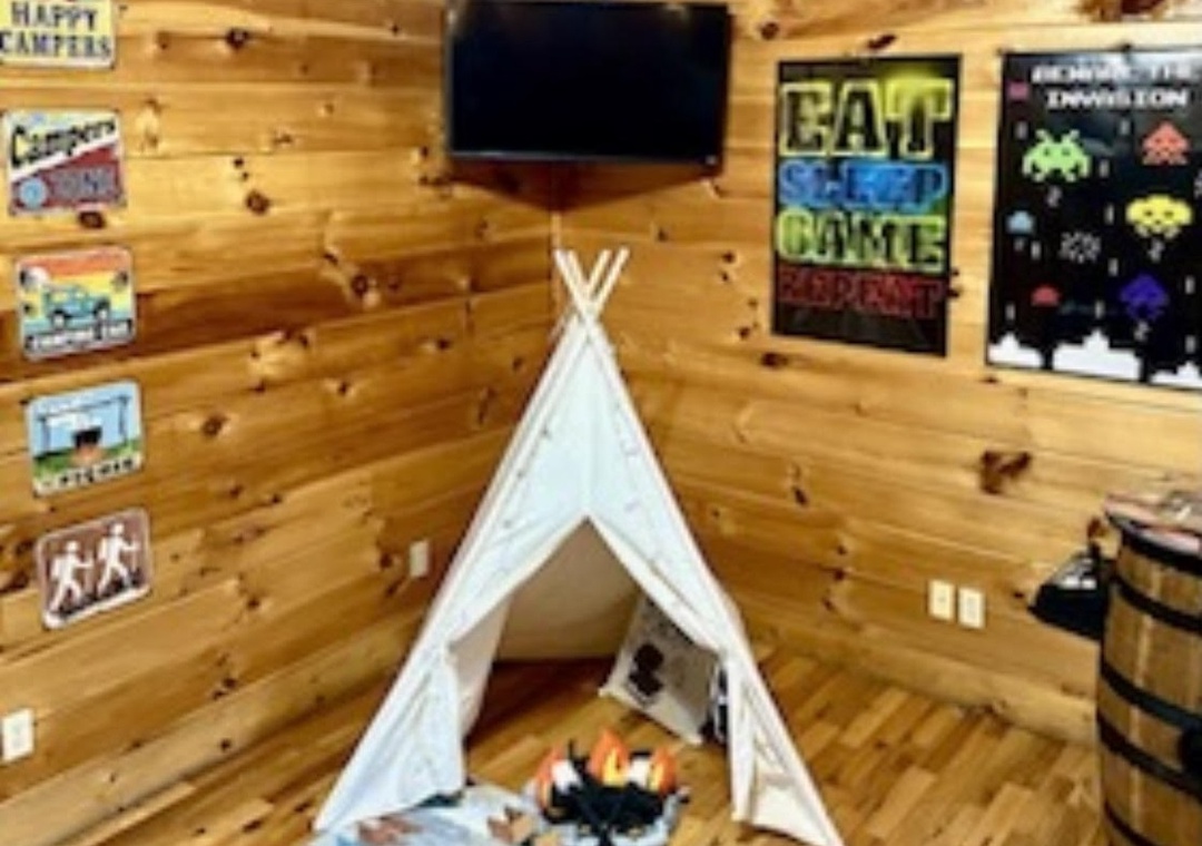 “Lazy Dazy” is the perfect vacation spot to both relax and play! Enjoy a quiet night in the living room while the fireplace roars in the distance as you and your loved ones catch the big game or movie night on the TV. The kids will LOVE hanging out in the loft, with their very own TV and play area. Outside, kick back in a rocking chair and take in the wooded views while you sip your morning cup of coffee or evening glass of wine. And you and the kiddos (and adults alike) will love relaxing in the bubbling hot tub while taking in that fresh Smoky Mountain air!