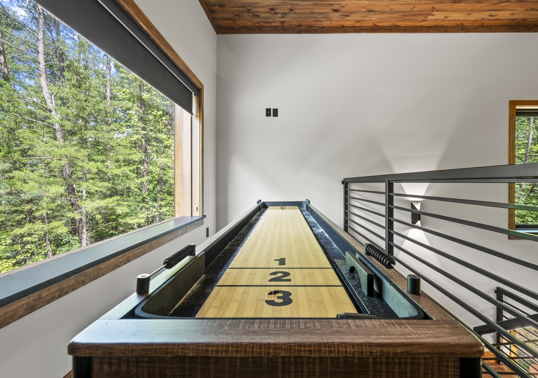 Luxe 634 offers a game room in the loft with a shuffleboard game, making it a great space for friendly competitions or family bonding. Wi-Fi is also available for those who want to stay connected. For an indulgent experience, make your way to the hot tub. Immerse yourself in the warm, bubbling waters while you sip on a glass of wine and take in the serene wooded views! While our cabin offers an ideal escape, there's still plenty to explore in the neighboring towns of Pigeon Forge and Gatlinburg. These vibrant locales boast an array of charming cafes, restaurants, picturesque parks, and captivating attractions, catering to a diverse range of tastes and interests. Whether you seek relaxation, adventure, or a bit of both, Luxe 634 is the perfect base for your mountain getaway.