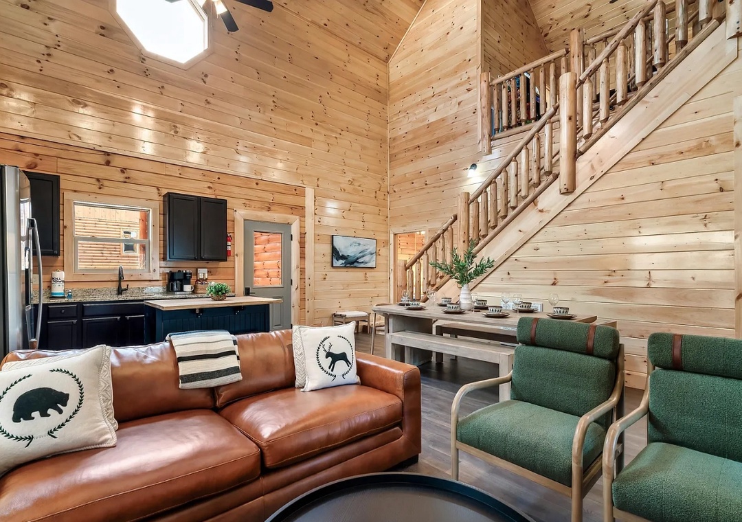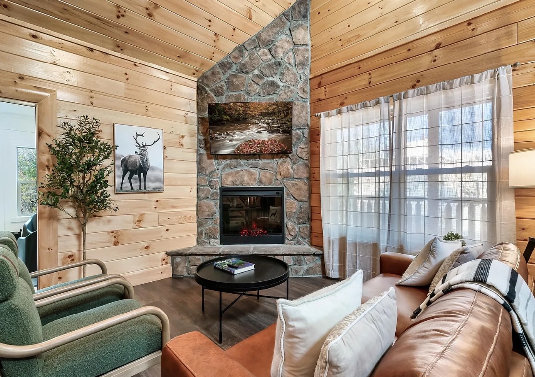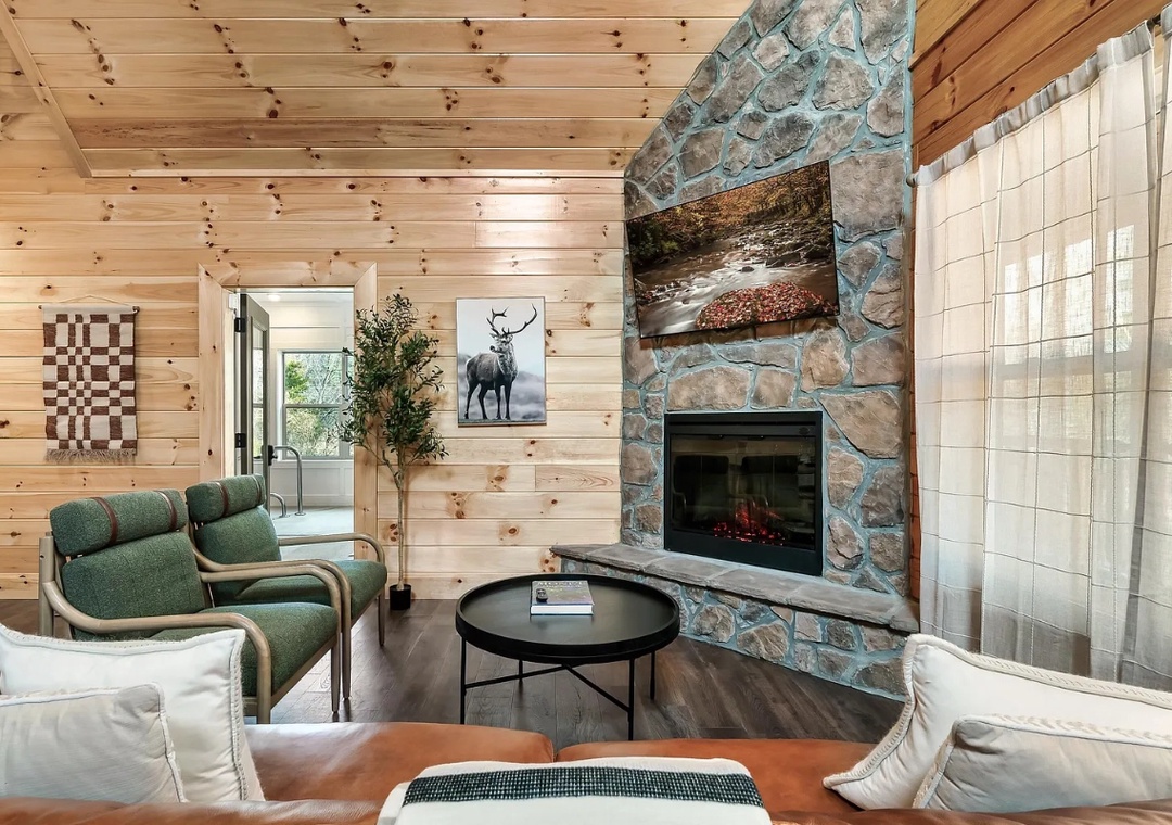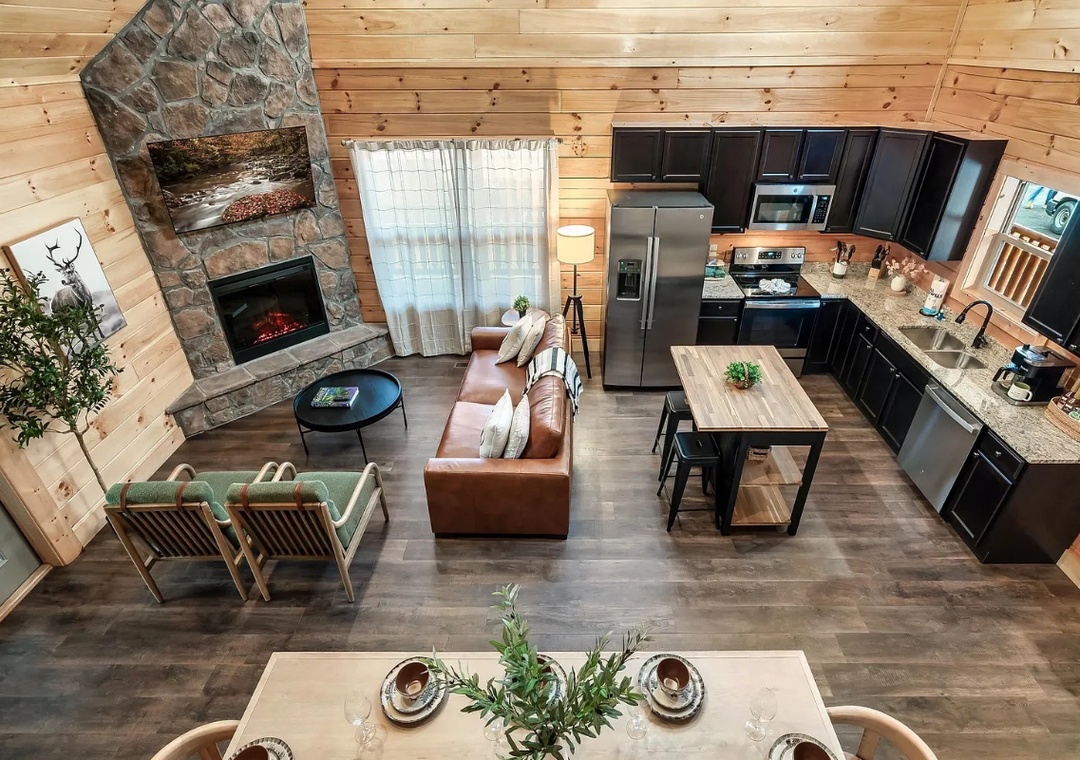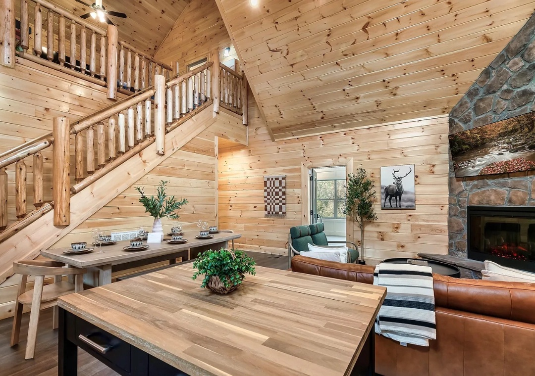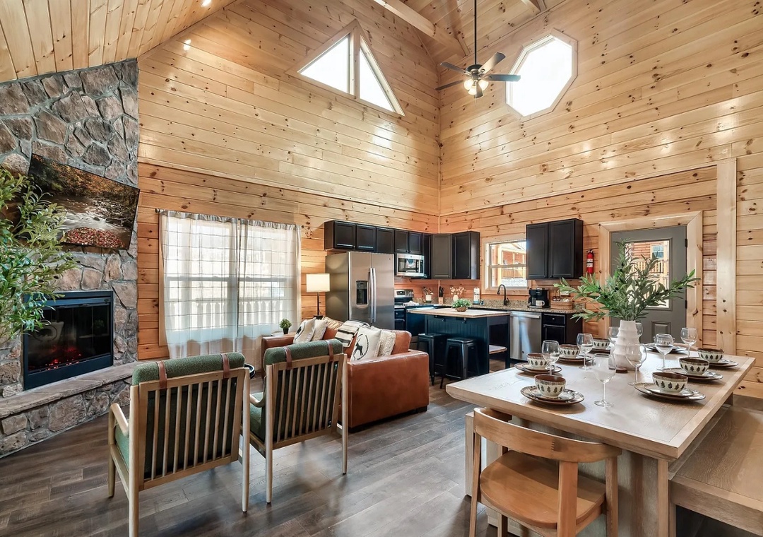 Perfectly situated just minutes from the best of Pigeon Forge, "Lykke Lodge" offers a seamless balance between adventure and relaxation. With an open-concept design, natural wood accents, and expansive windows showcasing the Smoky Mountain scenery, it creates a bright, inviting atmosphere that instantly makes you feel at home.