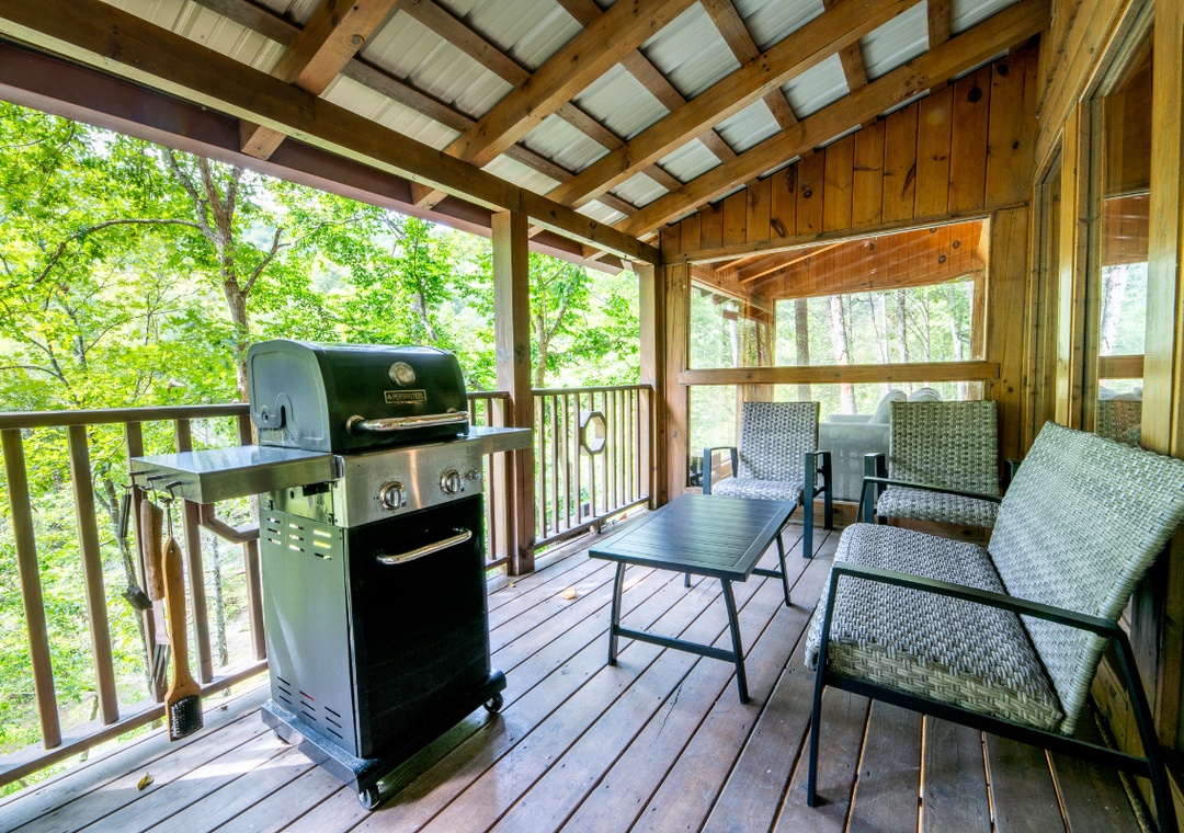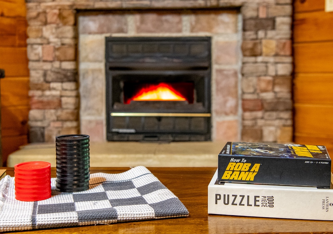 "Manna" offers a variety of entertainment options to make your mountain retreat as fun-filled and relaxing as possible. The cozy living room is equipped with a Smart TV, so you can catch up on your favorite shows, stream movies, or dive into a new series after a day spent exploring the mountains. The propane fireplace adds warmth and ambiance, making movie nights even cozier as you snuggle up on the comfortable seating. Step outside to the spacious back deck, where the hot tub awaits, providing the perfect spot for soaking and stargazing, or simply unwinding with the soothing sound of the nearby creek in the background. For those who enjoy outdoor cooking, a propane grill is ready for you to fire up, letting you savor a delicious barbecue meal right at the cabin while surrounded by nature. The cabin also includes a wood fire pit on the side of the property—a great setting for evening gatherings. Toast marshmallows, swap stories, or just relax as the flames crackle under the open sky.