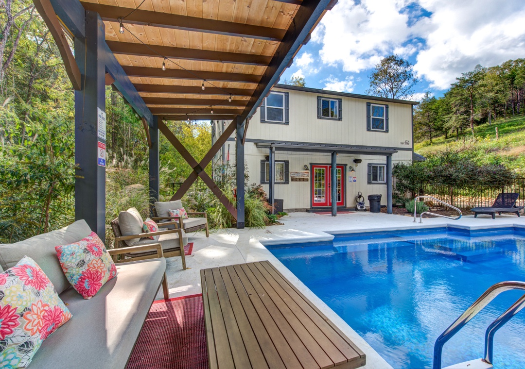 ★ Heated Saltwater Pool ★ Covered Pavilion ★ Private Nature Walk ★ Mountain Views ★ Full Kitchen ★ Open Living Spaces ★ Farm Charm