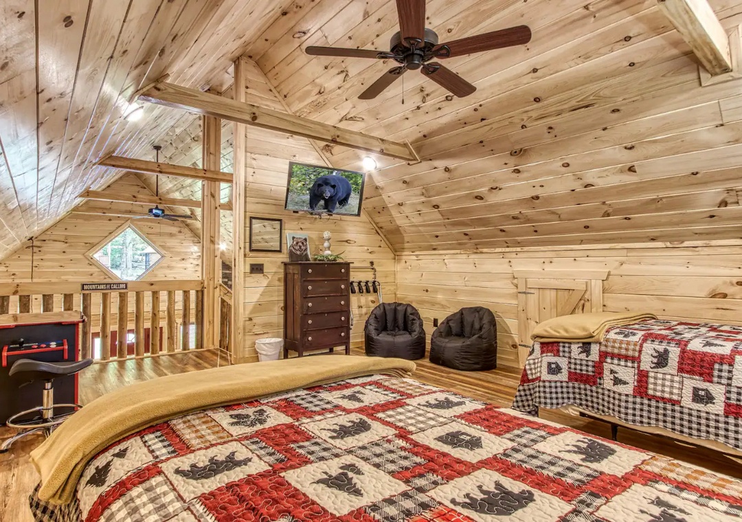 This was one stop on a very long road trip. We only spent 2 nights here, but would stay again. It’s close to downtown Gatlinburg & Pigeon Forge. My kids loved having the arcade game to play with when back at the cabin. The decor was warm & made you feel at home. They provide a baby gate for the stairs & other baby equipment that made it easier. The master room is very big. The hosts were quick to respond to any questions & very friendly. I highly recommend.- Reviewed On: 8/9/2023
