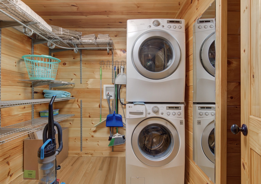 The fully equipped kitchen stands ready to fulfill all your culinary desires. Complete with a full-sized refrigerator, dishwasher, stove, microwave, and other kitchen appliances perfect for making breakfast, lunch, or dinner throughout your stay! All pots, pans, glasses, plates, silverware, etc. are also there for you! Enjoy your creations on the wooden dining table creating the perfect setting for shared meals and laughter.