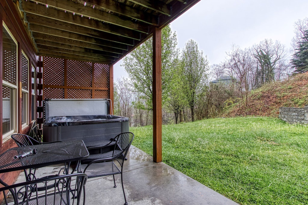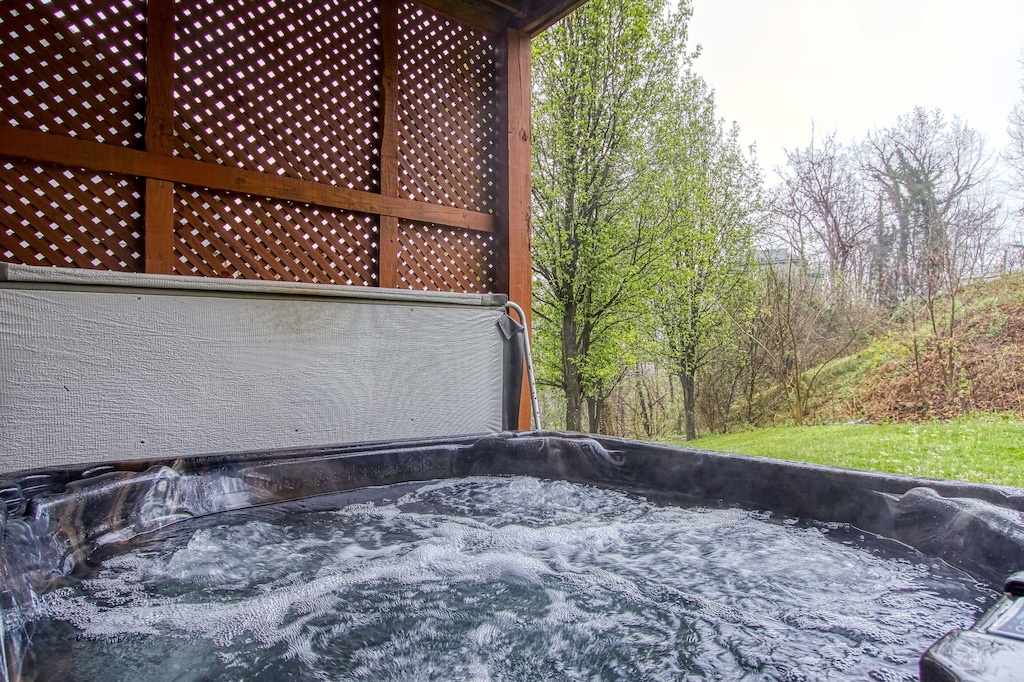 The basement level walks out to a spacious covered patio area complete with a new 7 person hot tub. This cabin has a large flat back yard, ideal for kids! In addition, two large private balconies are situated on the upper level, perfect for taking in the gorgeous scenic views. You will also find an outdoor BBQ grill and access to the resort community pool (seasonal).