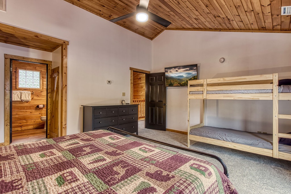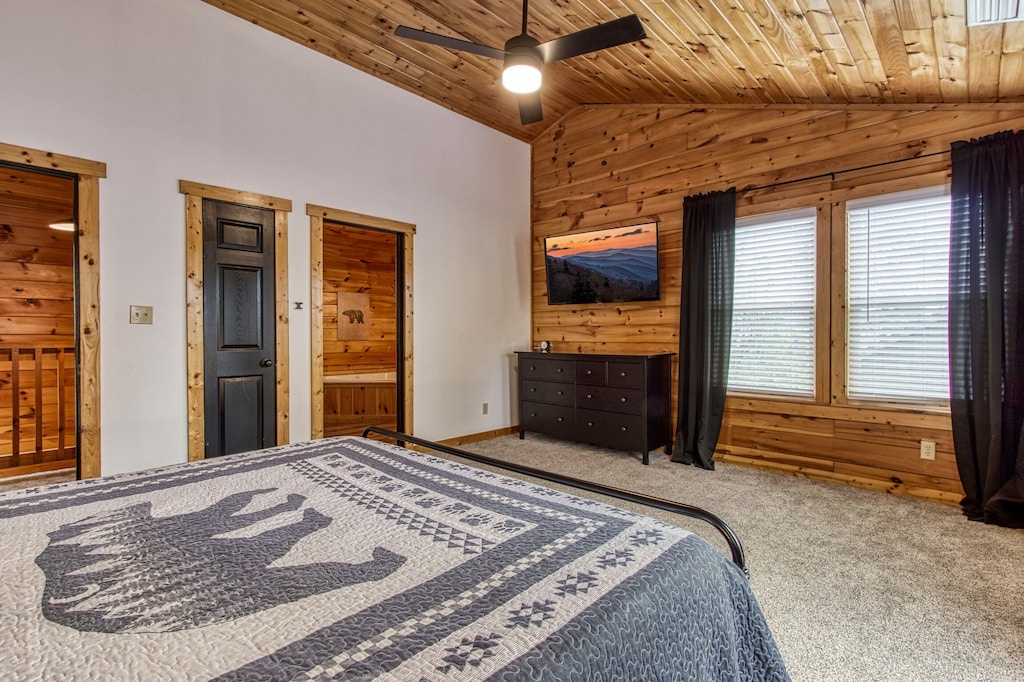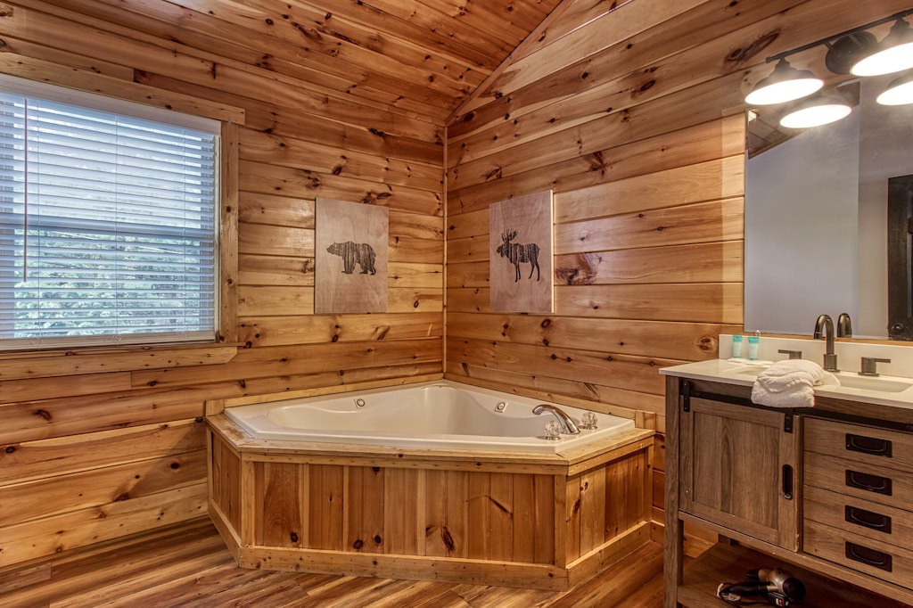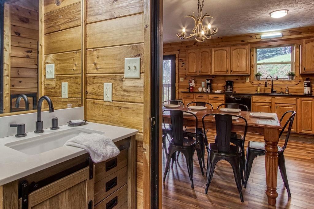We had a wonderful time at the Modern Rustic. The cabin is very comfortable and clean. It was plenty of room for my family to spread out and enjoy. The pool is right up the hill and very convenient. We saw about 8 bears during our stay. One with her cubs. That was exciting. If you don’t mind a drive high up in the mountains this cabin is perfect. We would definitely come back and stay again.- Reviewed On: 10/24/2023