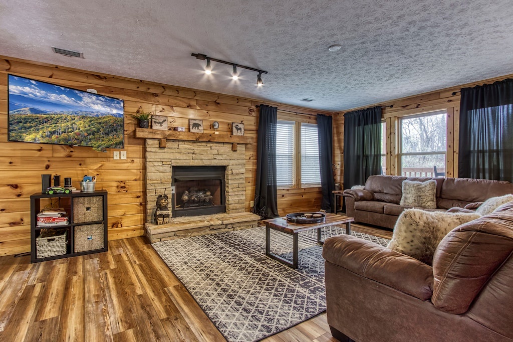 This three-level home offers 2 large living spaces on separate floors, which is just perfect for gathering with your friends and family, but still allows you to spread out and relax! All furniture has recently been updated and replaced with luxuriously rustic decor. Enjoy plush couches, large flat screen TVs, free Wi-Fi, spacious entertainment areas and more!