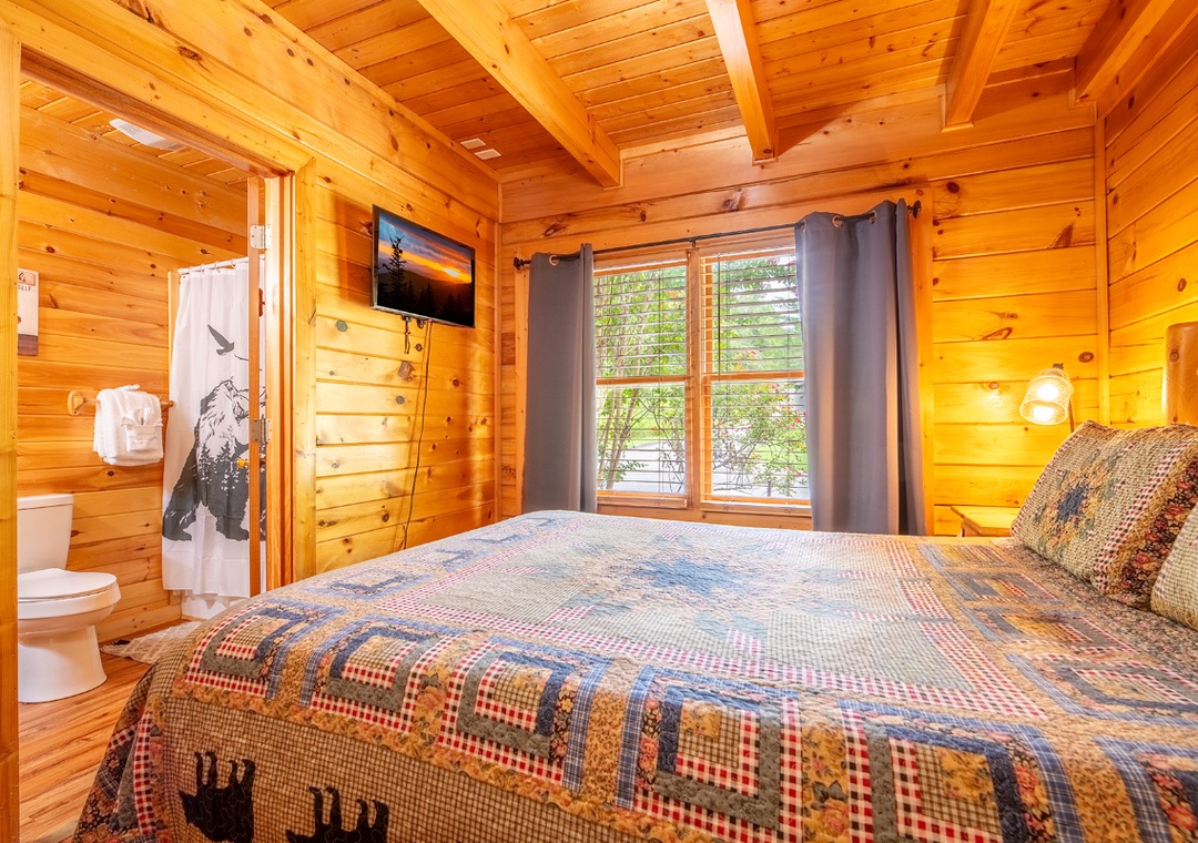 ✔ Bedroom #2: Inviting Bedroom with a King-sized Bed and a Flat-screen TV; Attached Full Bathroom with Shower/Tub Combo