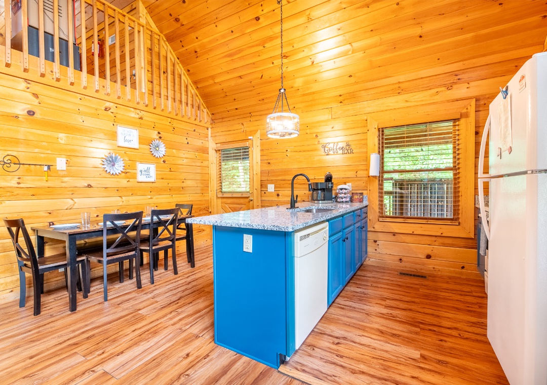 The fully-equipped kitchen boasts modern amenities, making it easy to prepare delicious meals for your family. Well-appointed with a full-sized refrigerator, dishwasher, stove, microwave, and other kitchen appliances perfect for making breakfast, lunch, or dinner throughout your stay! All pots, pans, glasses, plates, silverware, etc., are also there for you! Gather around the inviting dining table to share stories and laughter, as it invites you to savor each bite while taking in the natural beauty of the surroundings.