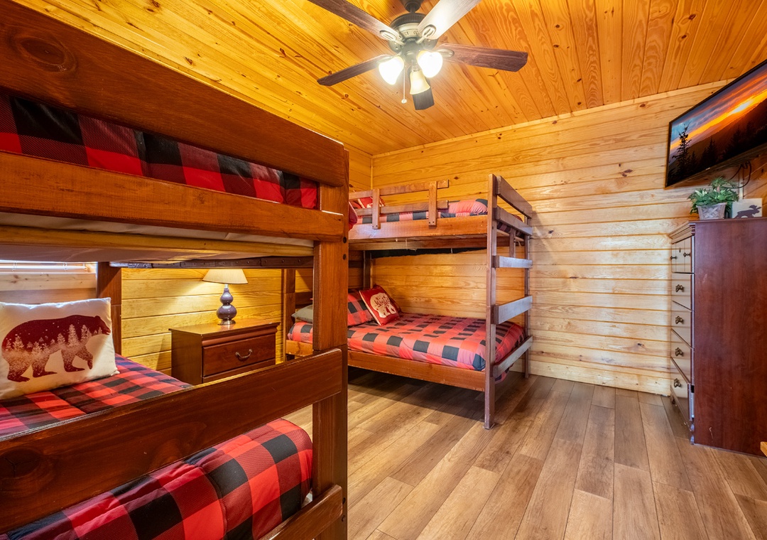 ✔ Bedroom #5 (Lower Level): Inviting Bedroom with a Twin-over-Twin, a Full-over-Full Bunk Beds and Flat-screen TV; Access to a Full Bathroom with Shower/Tub Combo