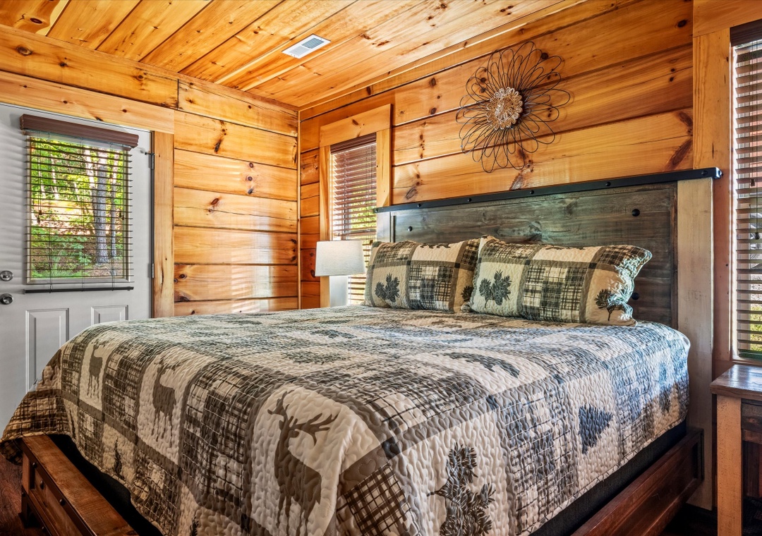 ✔ Bedroom #2 (Main Level): Lovely bedroom with King-sized bed & flat screen TV; Attached Full-sized bathroom with Stand Up Shower