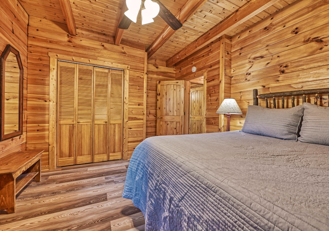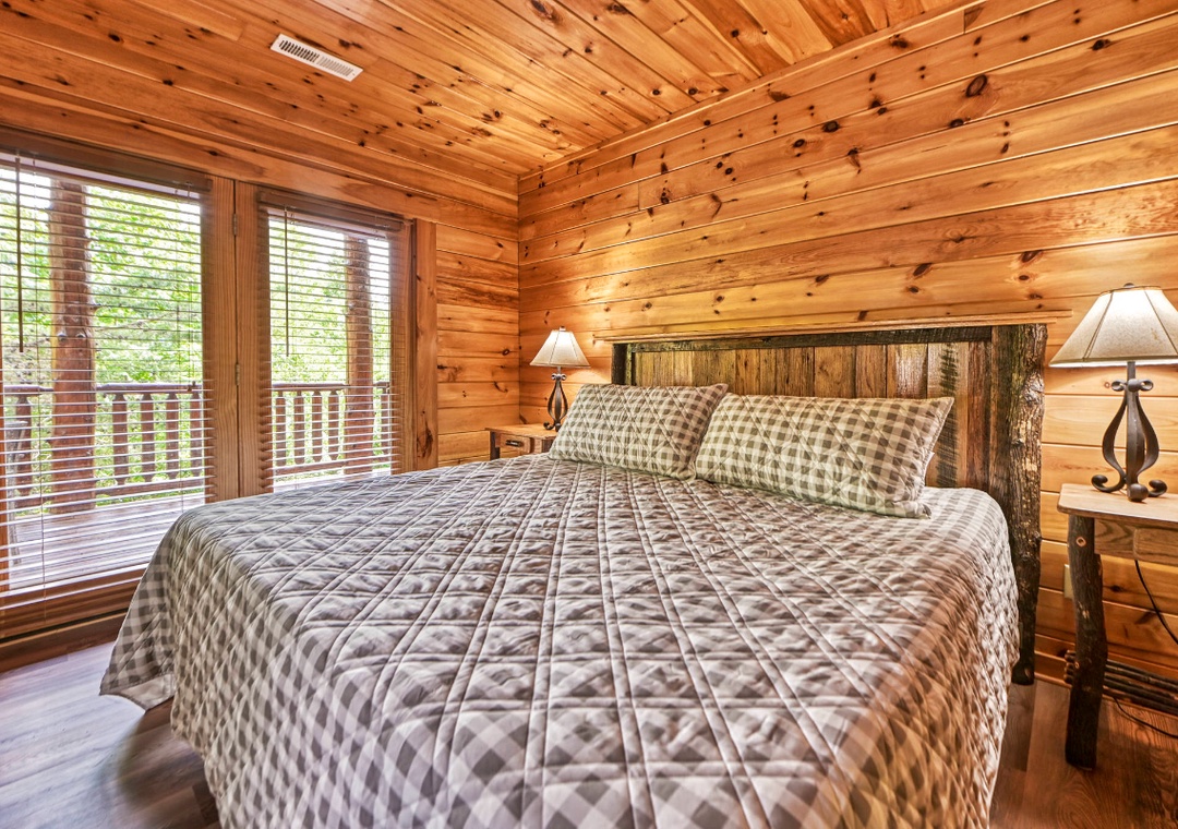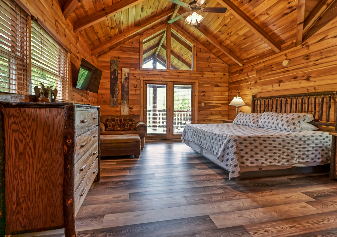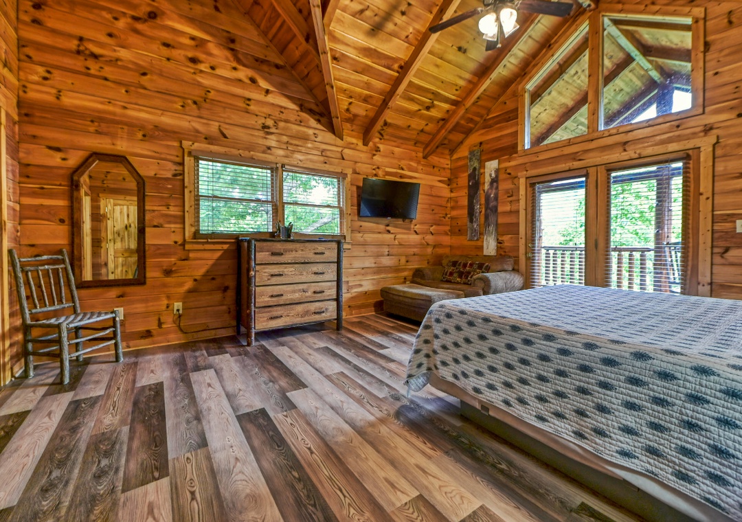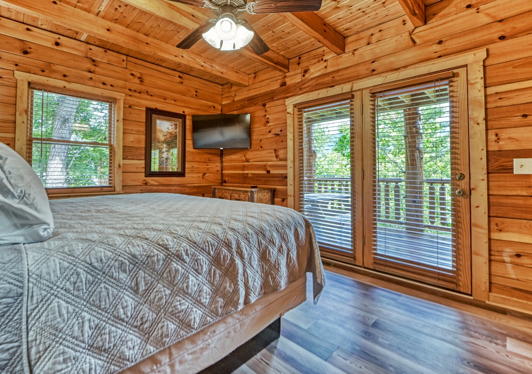 ✔ Bedroom #3 (Upper Level): Relaxing Bedroom with a King-sized Bed and a Flat-screen TV; Attached Full Bathroom with Stand Up Shower