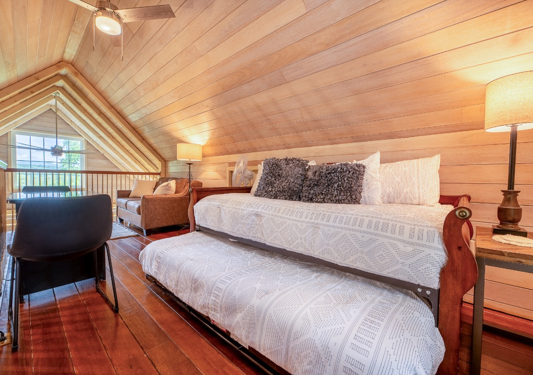 ✔ Open loft with twin beds — perfect for kids or additional guests