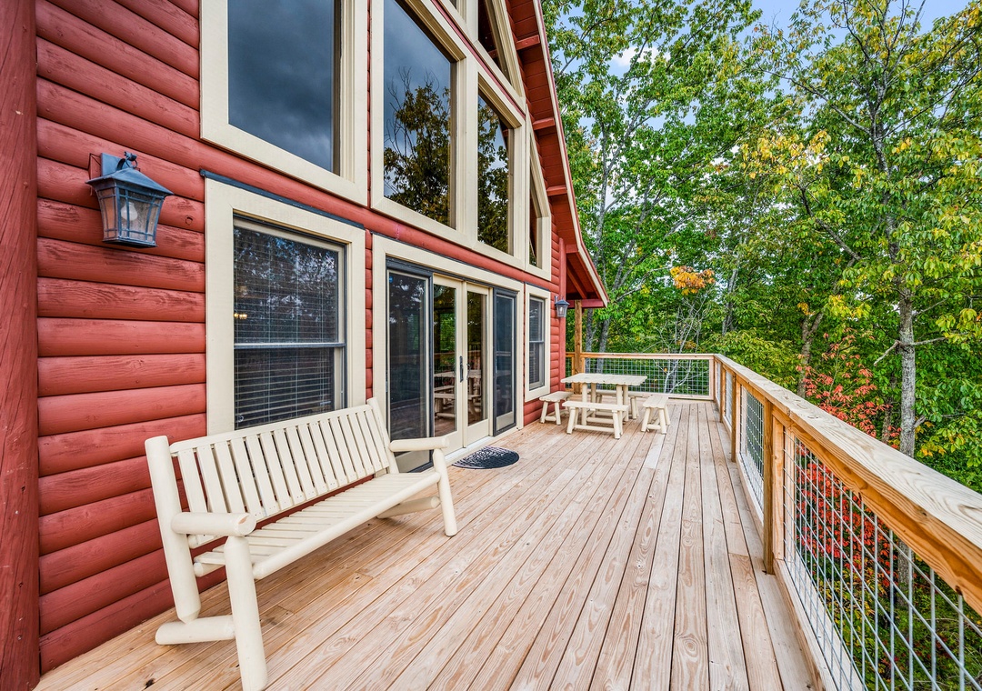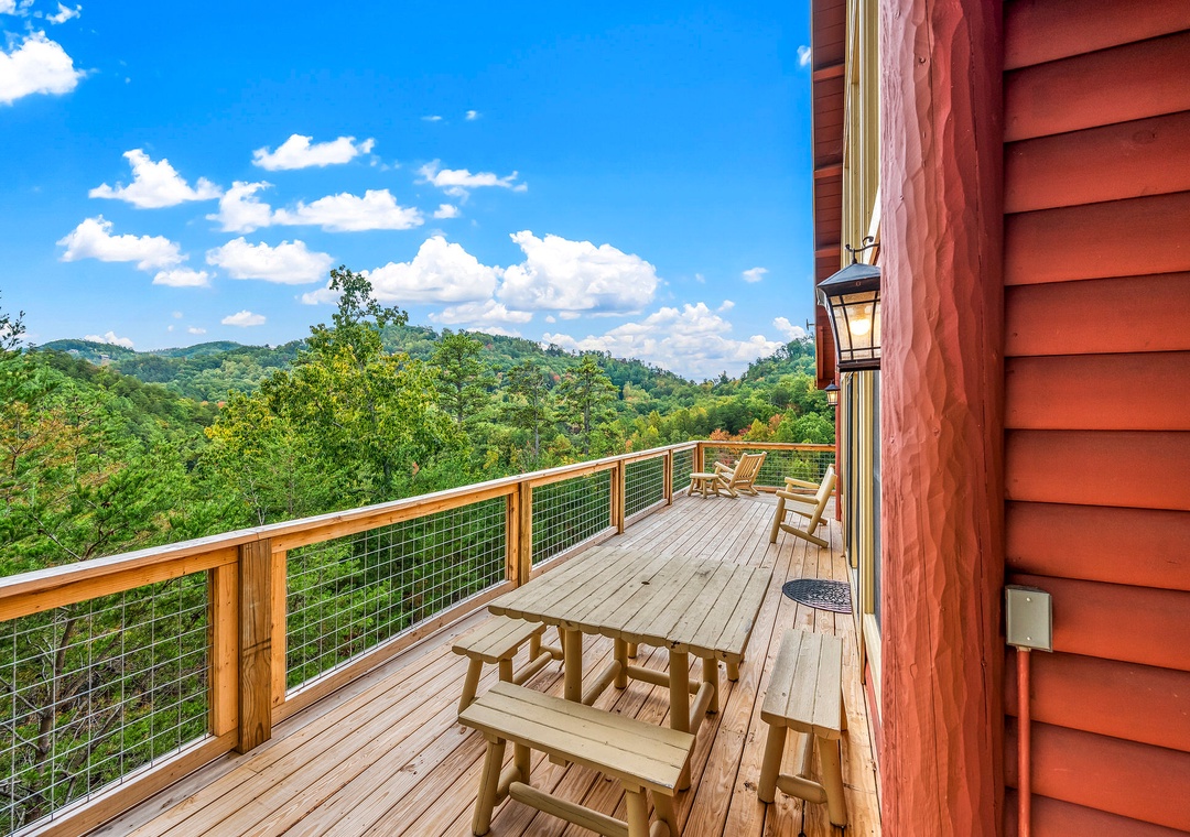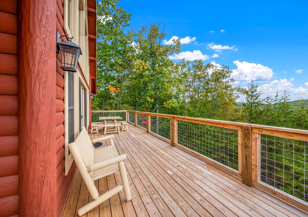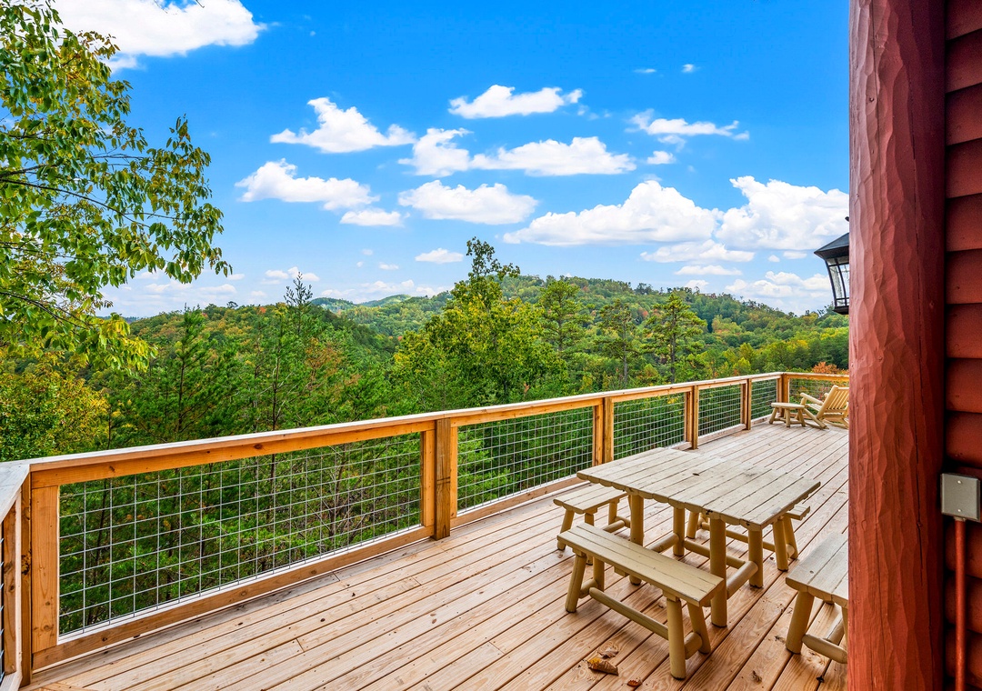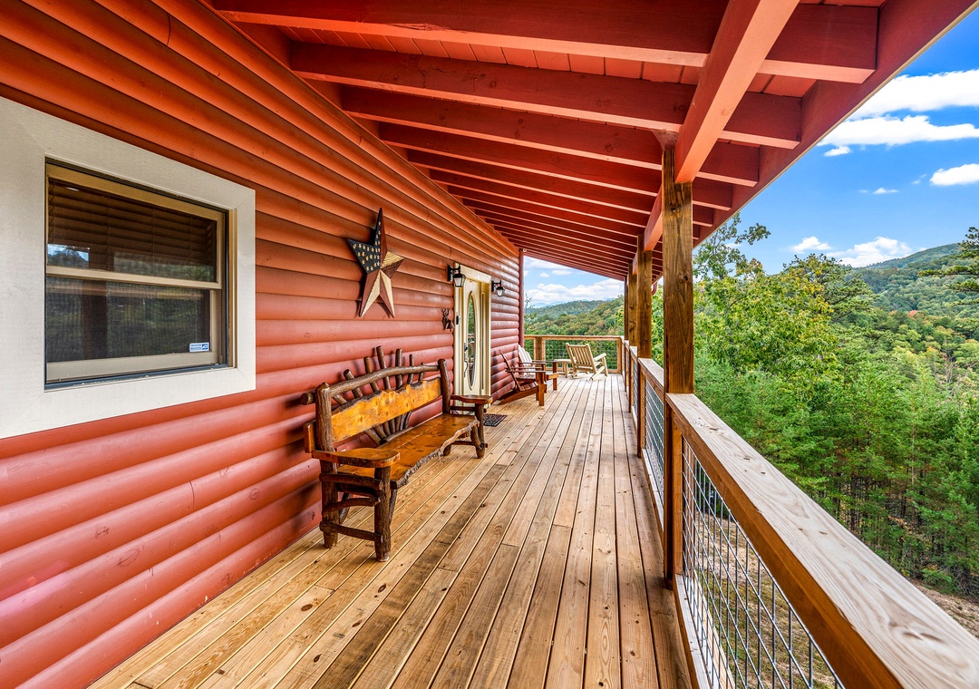 Beautiful cabin with great views. We had our 1.5 year old grandson and the gated wrap around porch was perfect for him to be able to play outside.- Reviewed On: 6/14/2023