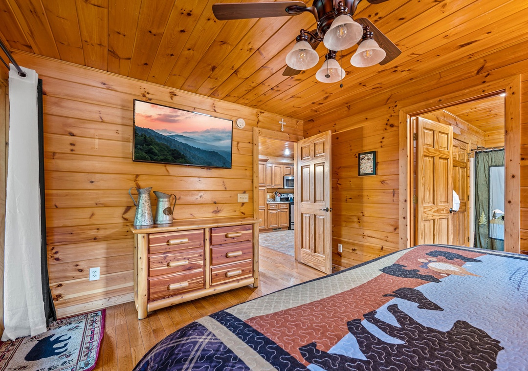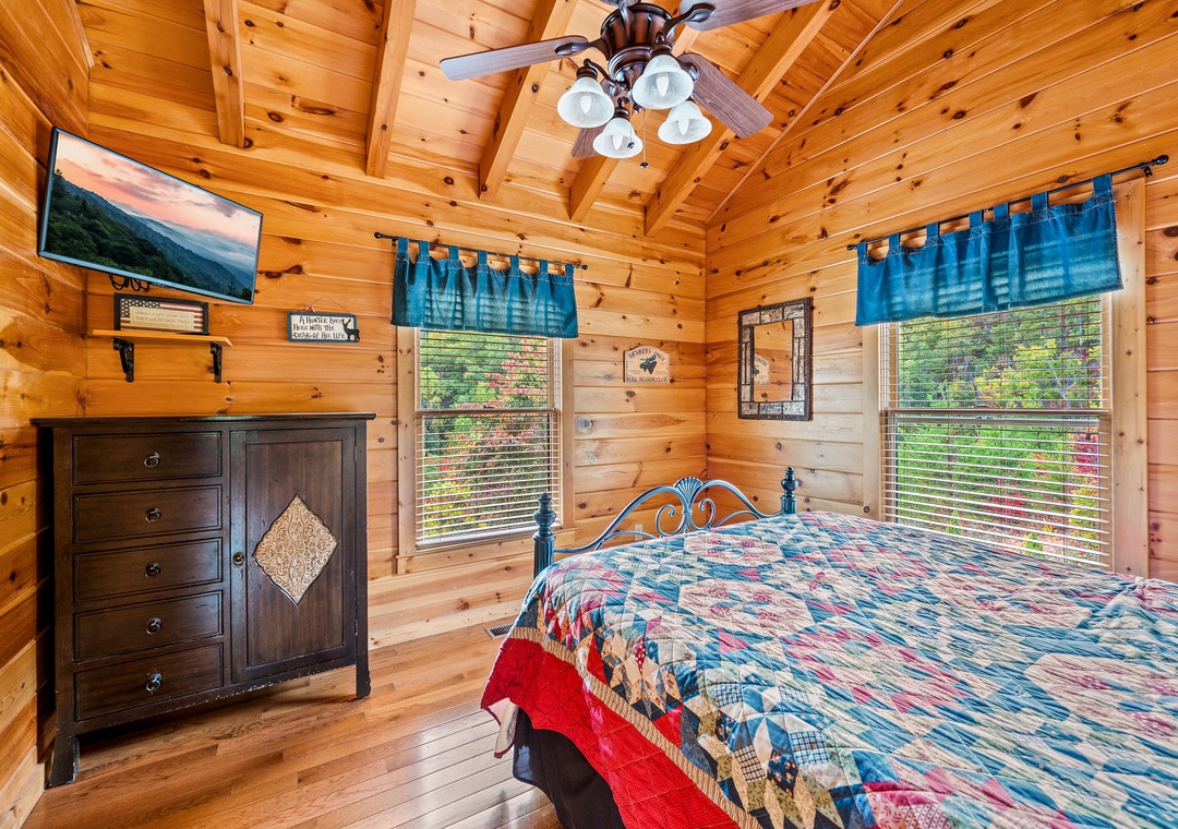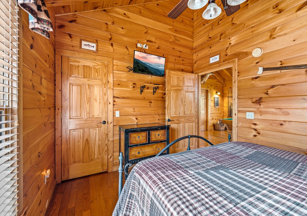 Bedroom #3 (Upstairs): Additional spacious bedroom with Queen-sized bed and flat screen TV