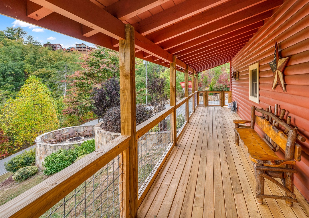 Hey Christina, Thanks so much for your awesome feedback! It's great to hear that you and your grandson had a blast at Mountain Wonderland, and that the porch was perfect for him to play safely outside. We love hosting families and we're really happy that you had a great time. Thanks for choosing us as your home away from home and we can't wait to have you back again soon!Smoky Mountain Holiday staff