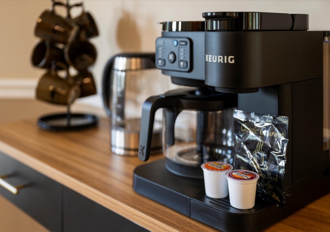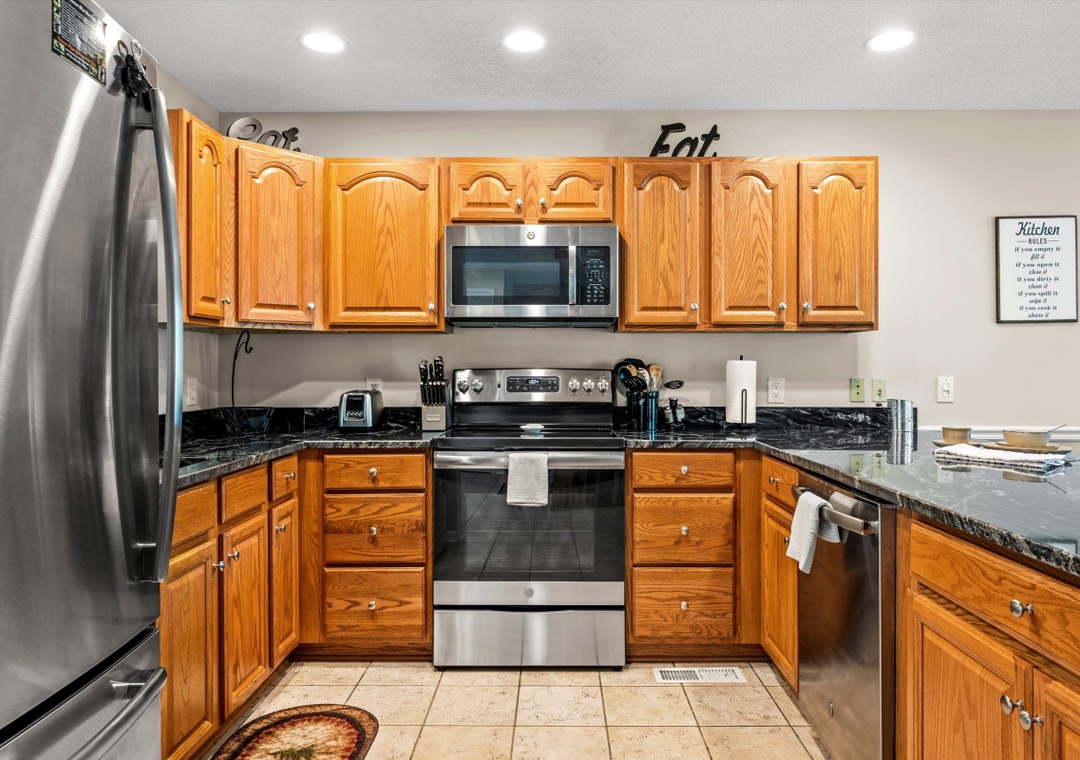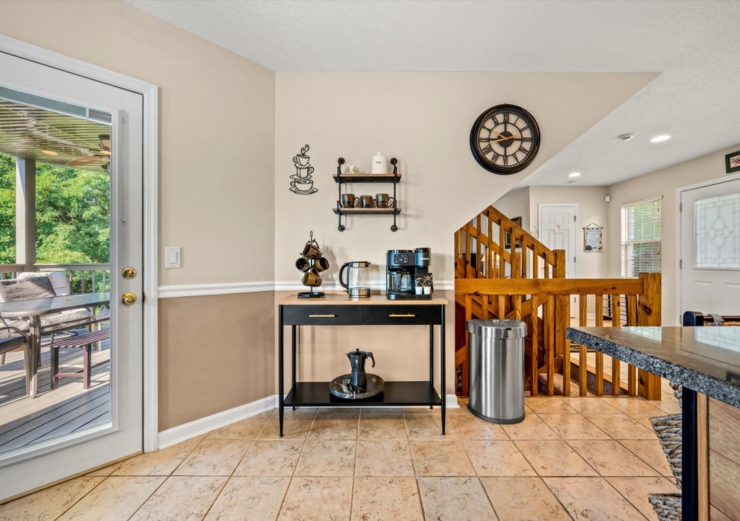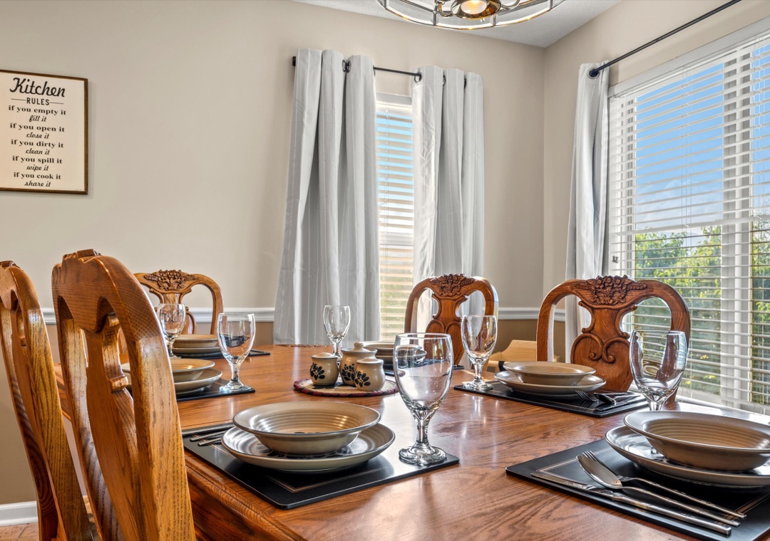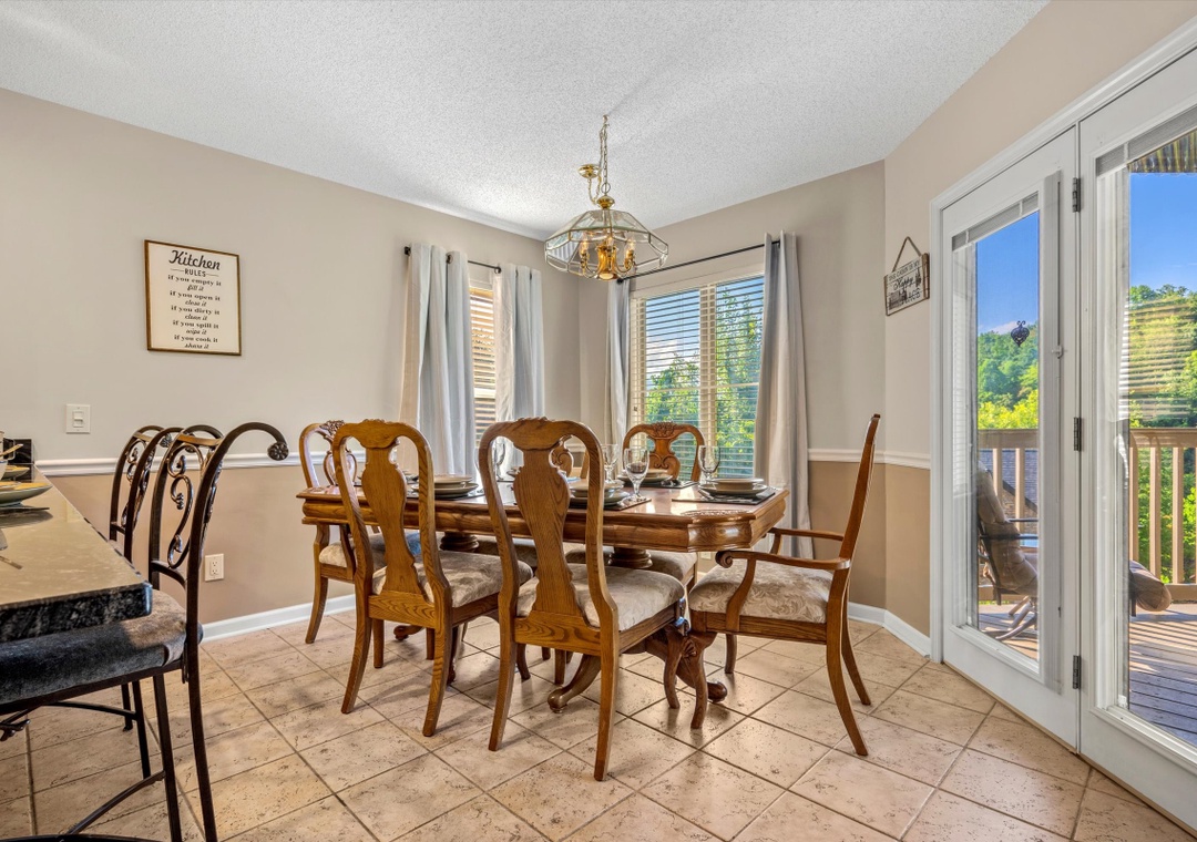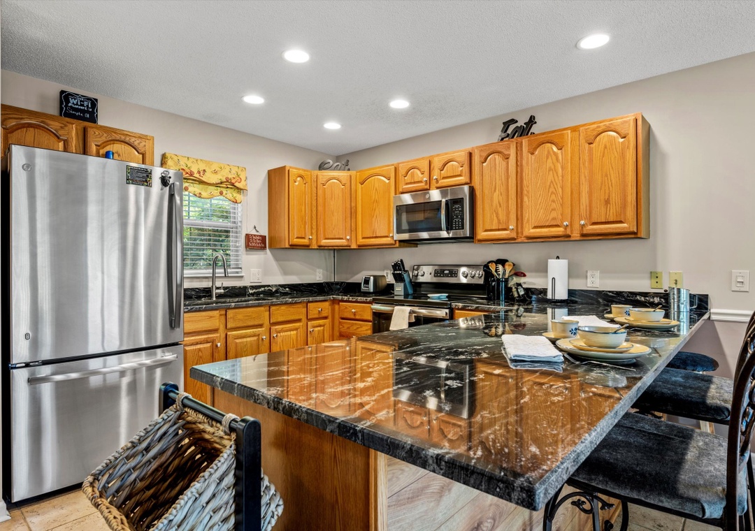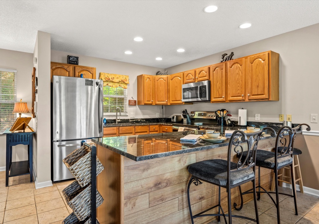 The gourmet kitchen boasts modern amenities making it easy to prepare delicious meals for your family or friends. Well-appointed with a full-sized refrigerator, dishwasher, stove, microwave, and other kitchen appliances perfect for making breakfast, lunch, or dinner throughout your stay! All pots, pans, glasses, plates, silverware, etc. are also there for you! Gather around the inviting dining table or the breakfast bar to share stories and laughter as it invites you to savor each bite while taking in the natural beauty of the surroundings.