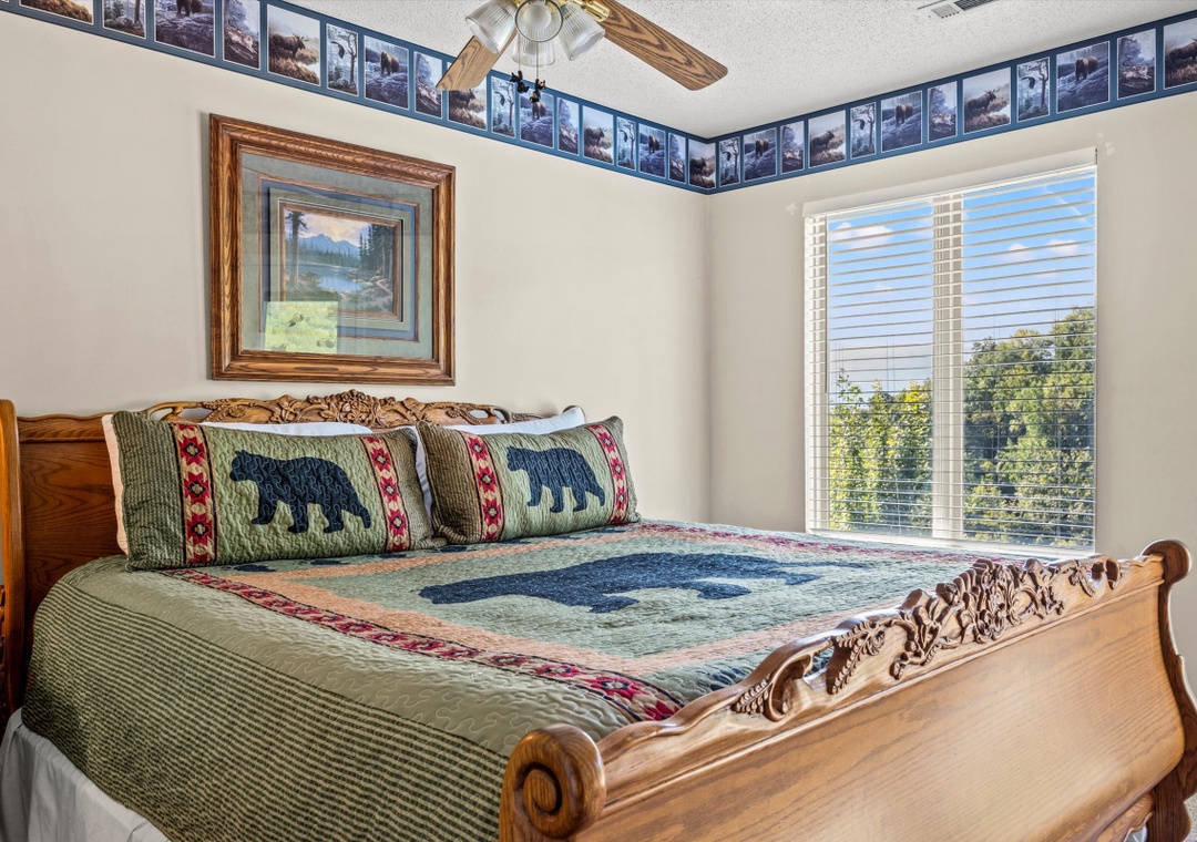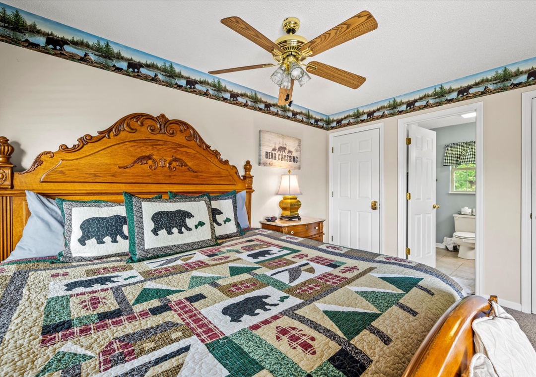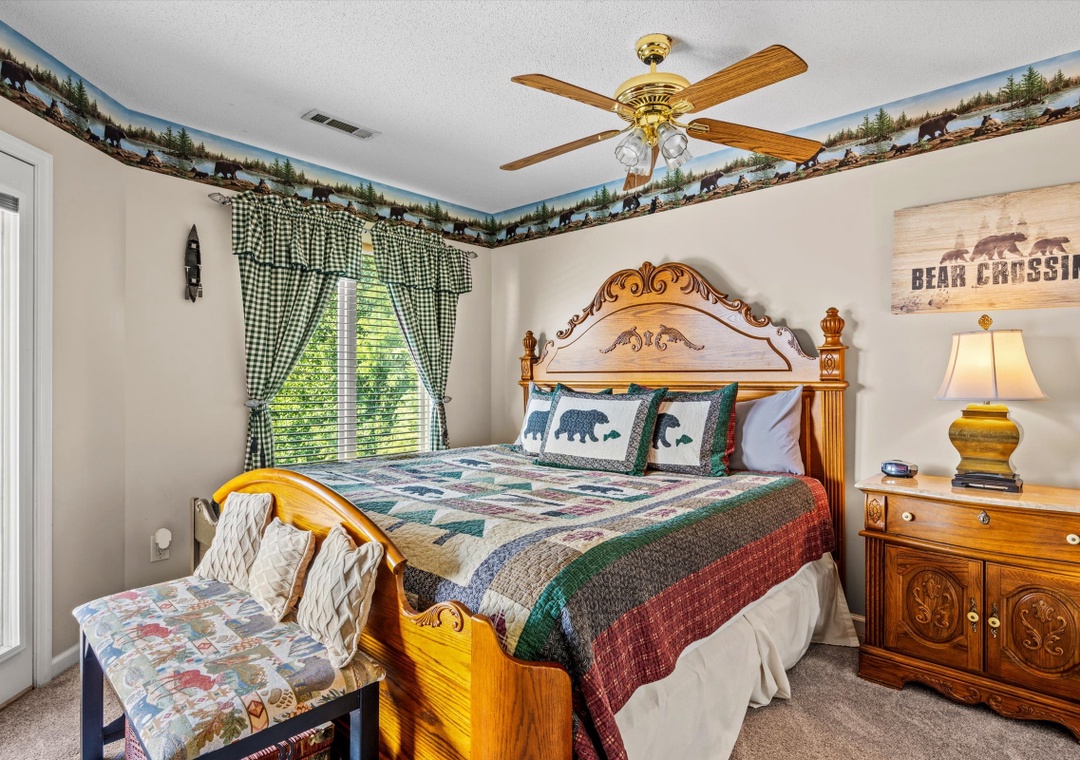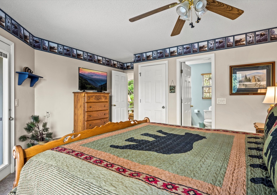 ✔ Bedroom #3 (Lower Level): Inviting Bedroom with a King-sized Bed and a Full-screen TV; Access to a Full Bathroom with Stand Up Shower