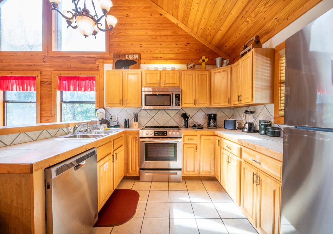 The fully-equipped kitchen boasts modern amenities making it easy to prepare delicious meals for your family or friends. Well-appointed with a full-sized refrigerator, dishwasher, stove, microwave, and other kitchen appliances perfect for making breakfast, lunch, or dinner throughout your stay! All pots, pans, glasses, plates, silverware, etc. are also there for you! Gather around the inviting dining table to share stories and laughter as it invites you to savor each bite while taking in the natural beauty of the surroundings.