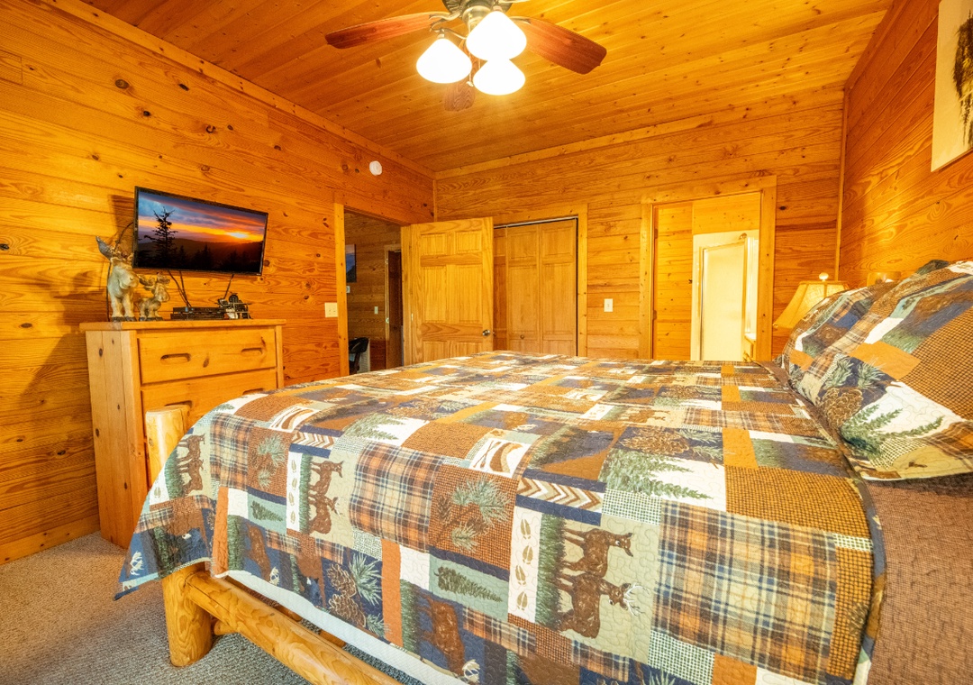 ✔ Bedroom #3 (Lower Level): Comfy Bedroom with a King-sized Bed and Flat-screen TV, Attached Full Bathroom with Stand Up Shower and Jacuzzi Tub