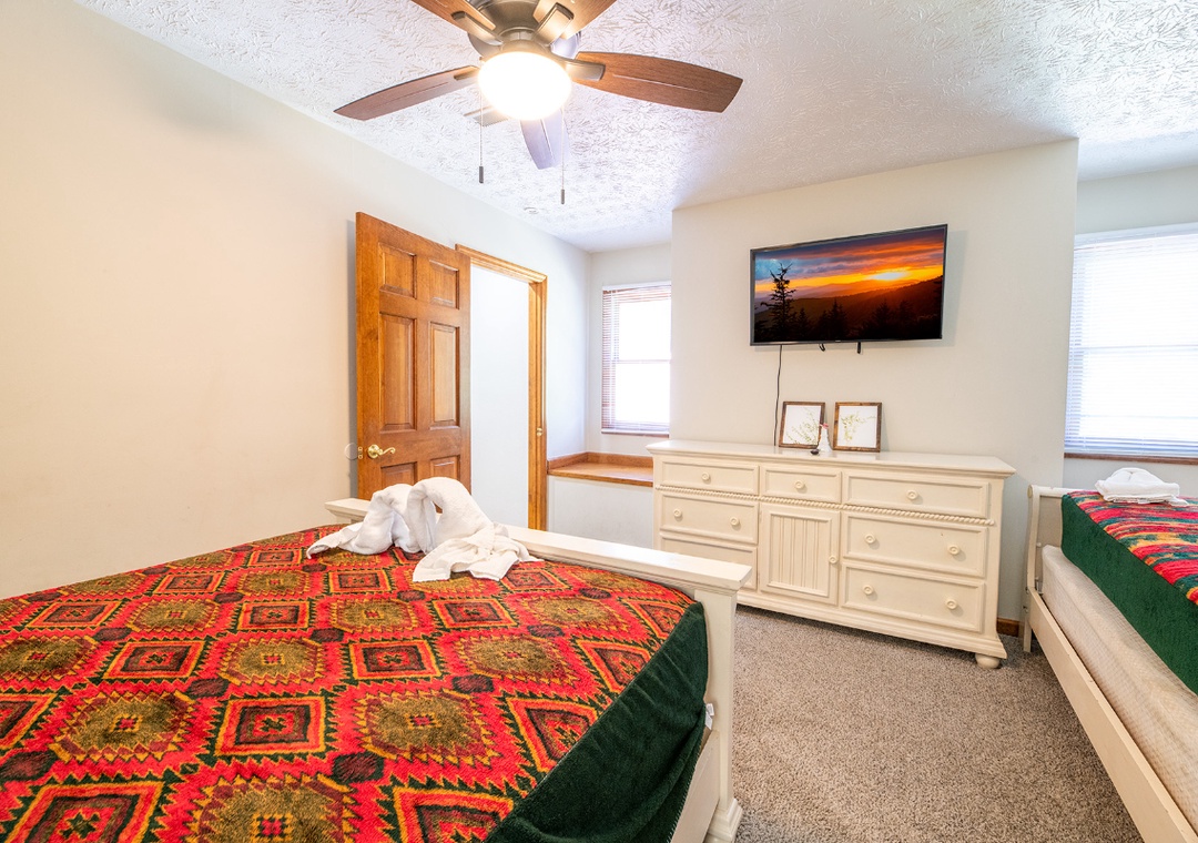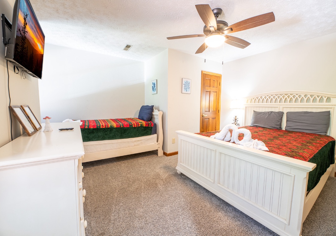 ✔ Bedroom #7 (Upper Level): Cozy Bedroom with a Full Bed, a Twin Bed, and a Flat-screen TV